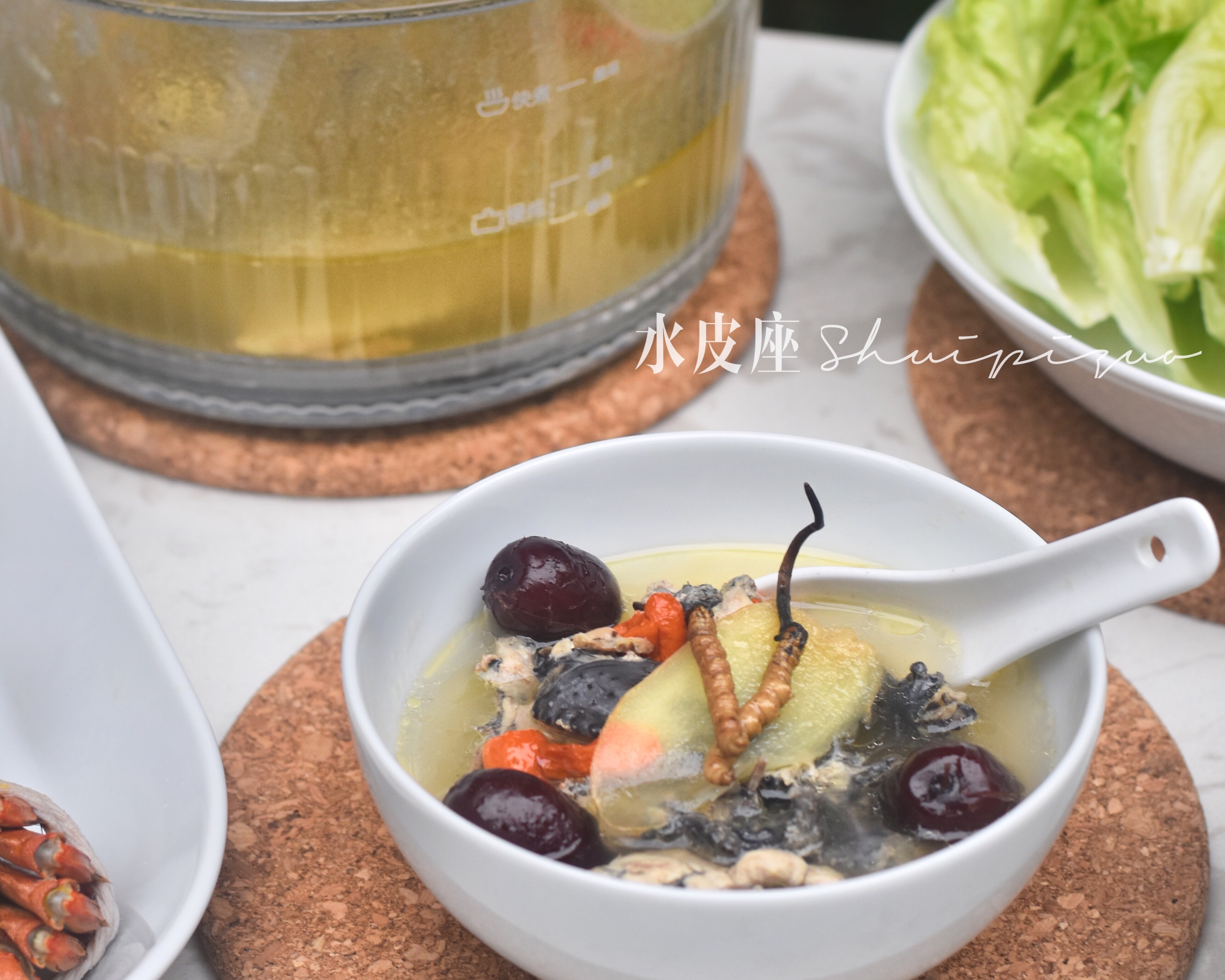 8. 慢炖2小时后,放入虫草,继续炖煮10分钟,放入枸杞,加盐调味即可出锅,煲一锅靓汤就是这么简单。