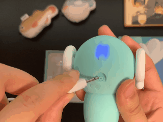 长按3秒「小海马」后脑勺的上端按键启动机器。