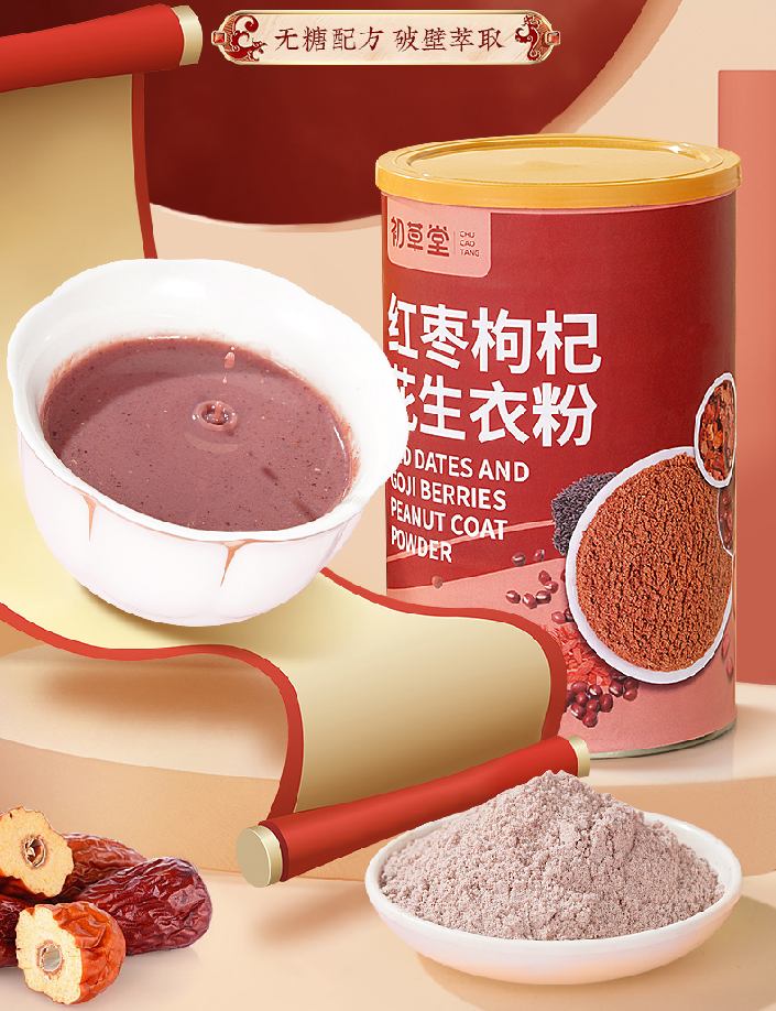 养生老牌初草堂,采用高科技破壁提取技术,研发出这款即食【红枣枸杞花生衣粉】,滋脾,养血,提升血小板。