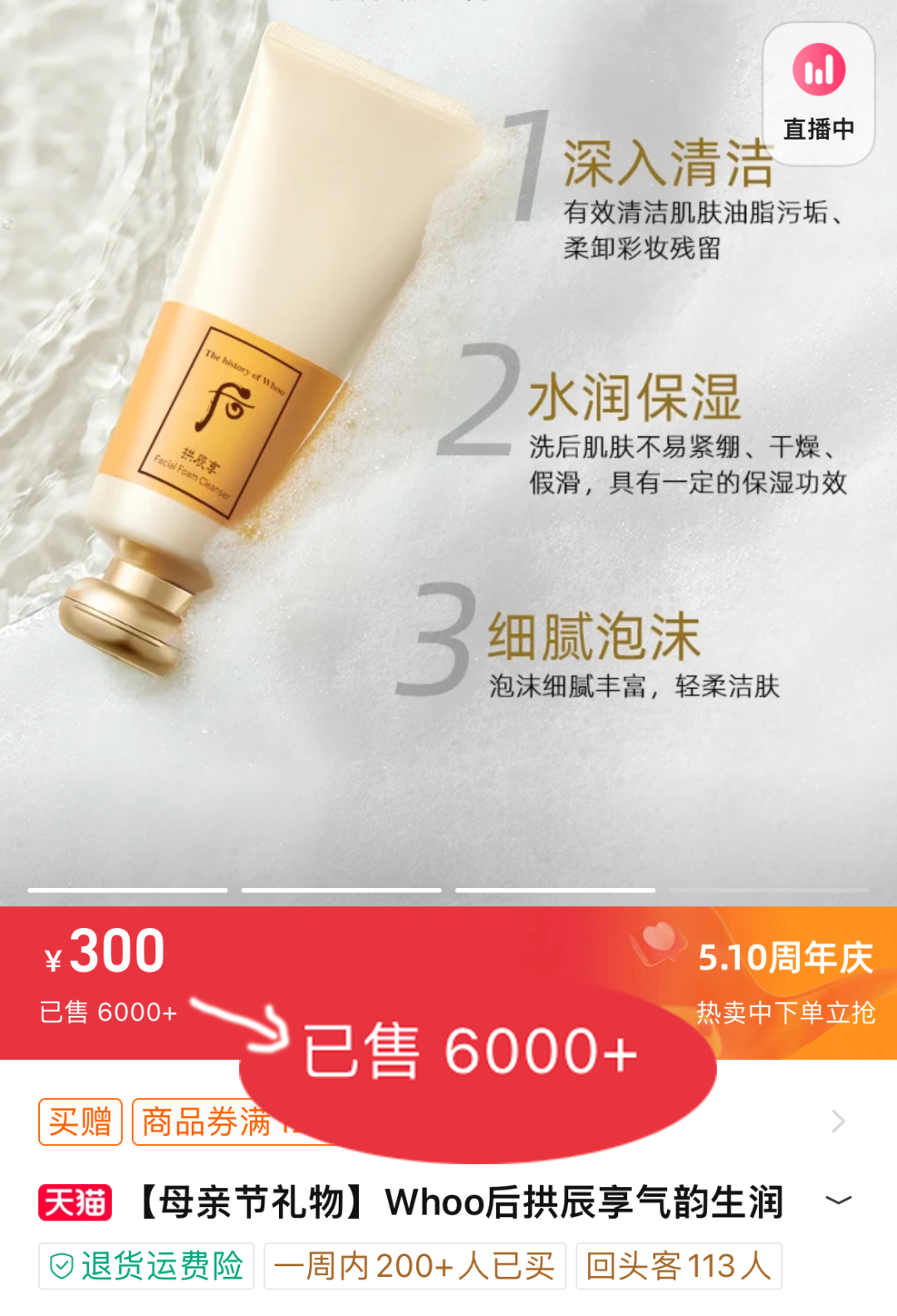 这款洁面膏采用的是古代宫廷秘方,whoo/后家的核心成分拱辰丹。