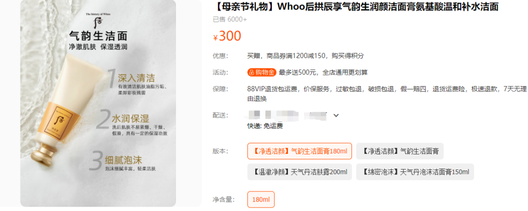 低至30元!Whoo后天气丹拱辰享洁面膏,保湿不紧绷、黑头闭口都洗没了!