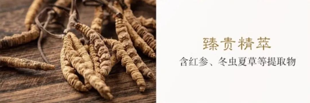 除了拱辰精萃,另外还添加了红参、冬虫夏草等臻贵精萃。