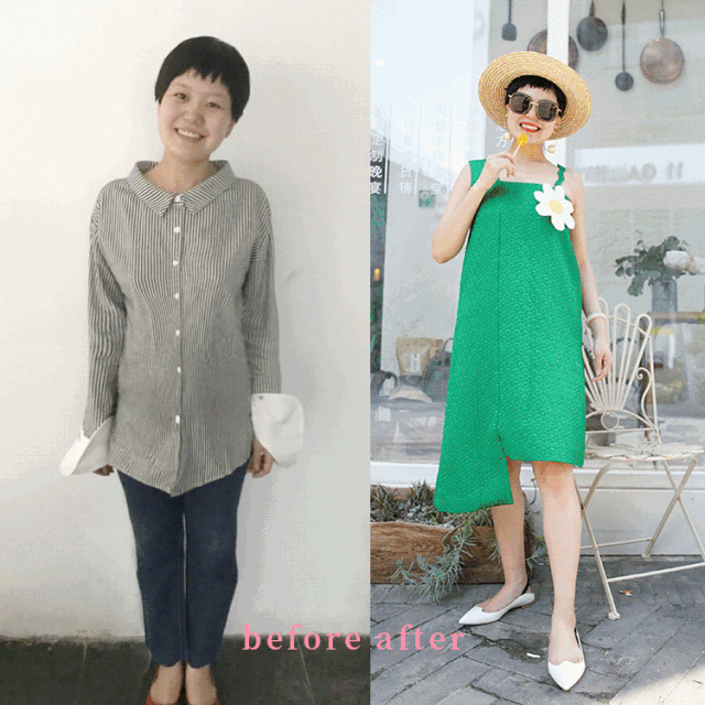 改造前:怀孕后身材发胖,穿衣服总遮得严实,看到镜子里的自己老气横秋,越来越没自信心。