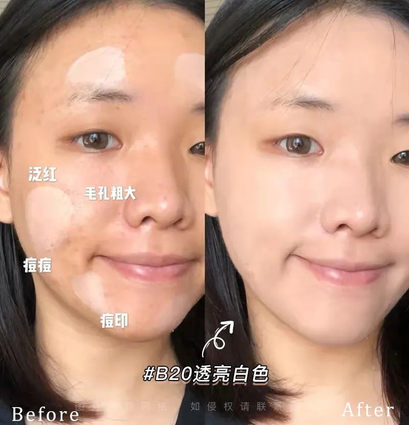 1、添加了水雾光遮瑕分子,让粉体像狗子一样滋润又服帖