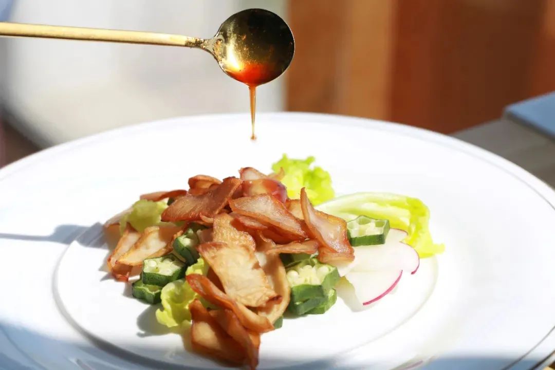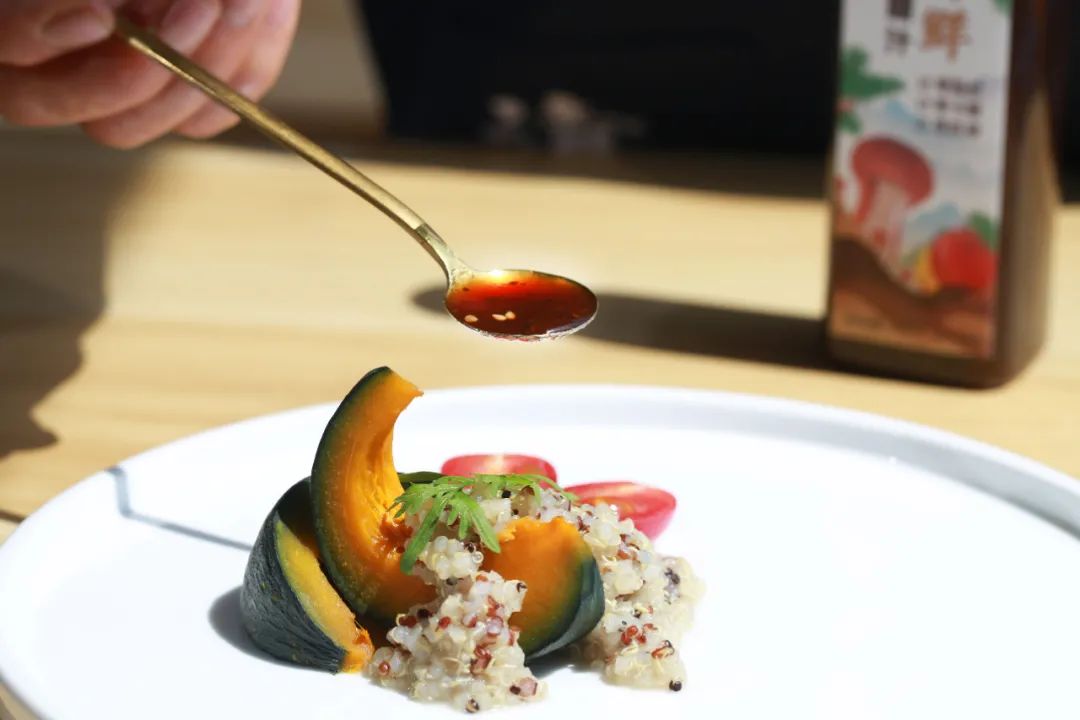 凉拌一些小菜时,加几滴松茸油醋汁,就很入味。