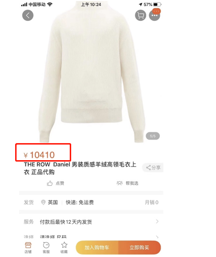 今天这件羊绒毛衣,the row同款,100%羊绒,代购10000+。