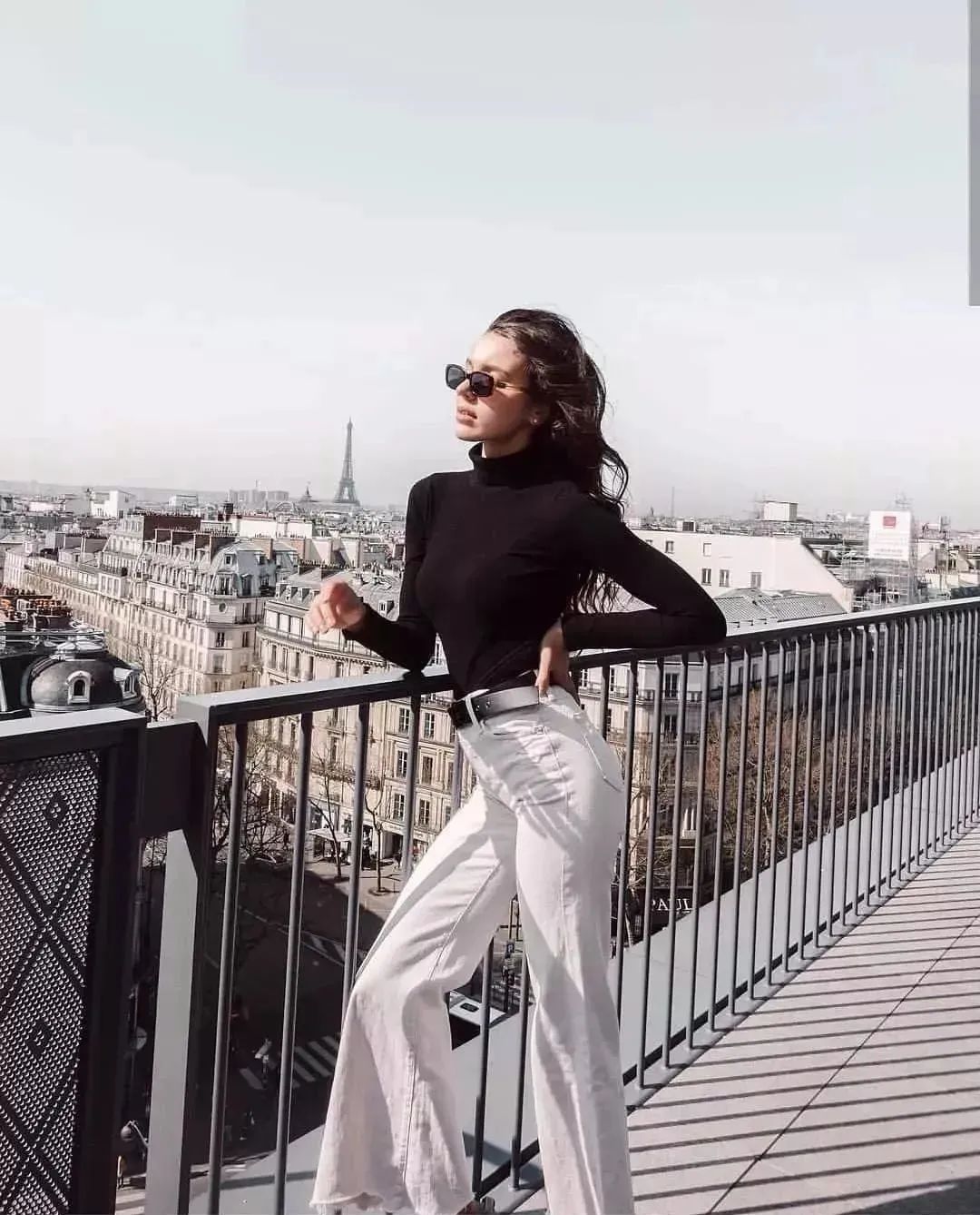 搭配大家都很爱的白色直筒裤,轻轻松松就能打造超流行的法式风情~