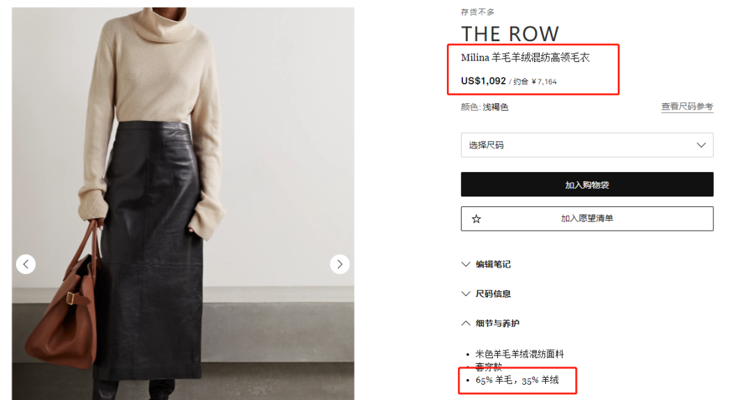 好一些的品牌,像The row的羊绒羊毛混纺,价格就去到了7000+。