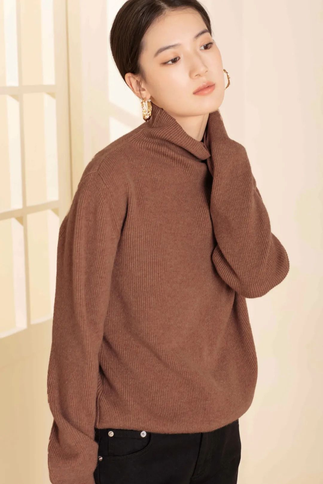秋冬还有必不可少的一件,就是棕色系的毛衣。