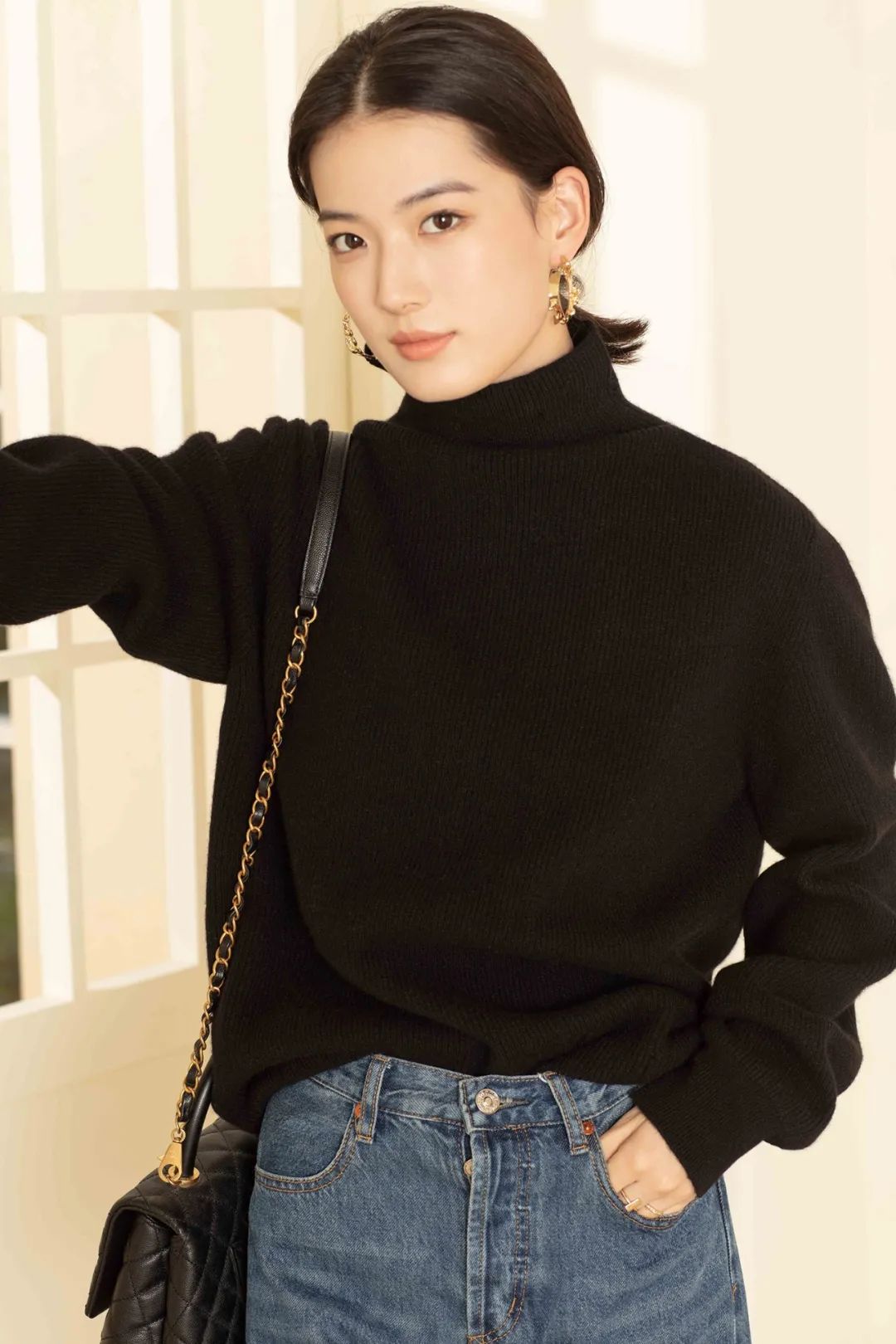 脸还是这张脸,身材也没变,但换上高领衫后,优雅又有女人味,哪还有“孤僻小女孩”的影子...