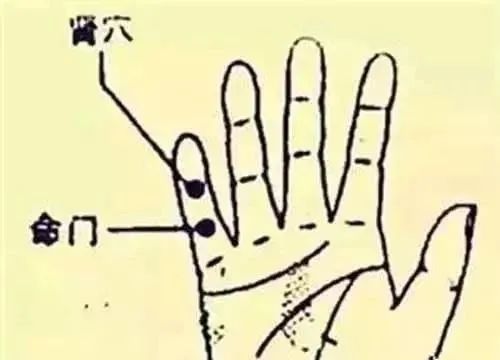 肾穴位于位于手掌侧小指第一指节。命门穴位于手掌侧小指第二指节。