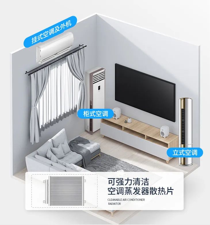 家里有多台空调的,统统交它就没错了:柜式、挂式、空调外机,连车载空调都能用。