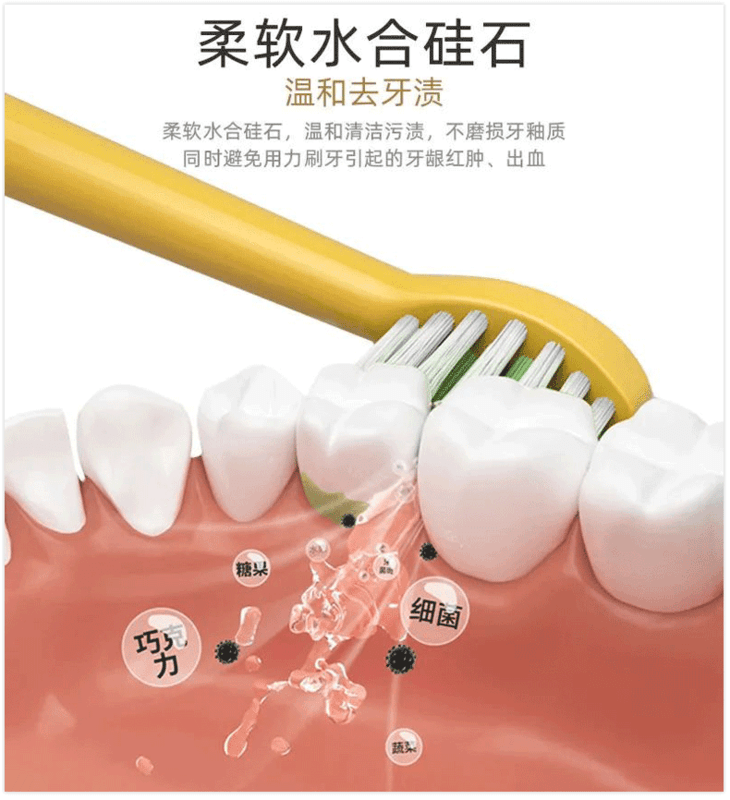 圆润的小颗粒温柔地拂过齿面,刷感很舒服,还能深入牙隙,把藏在牙缝污垢清扫干净!