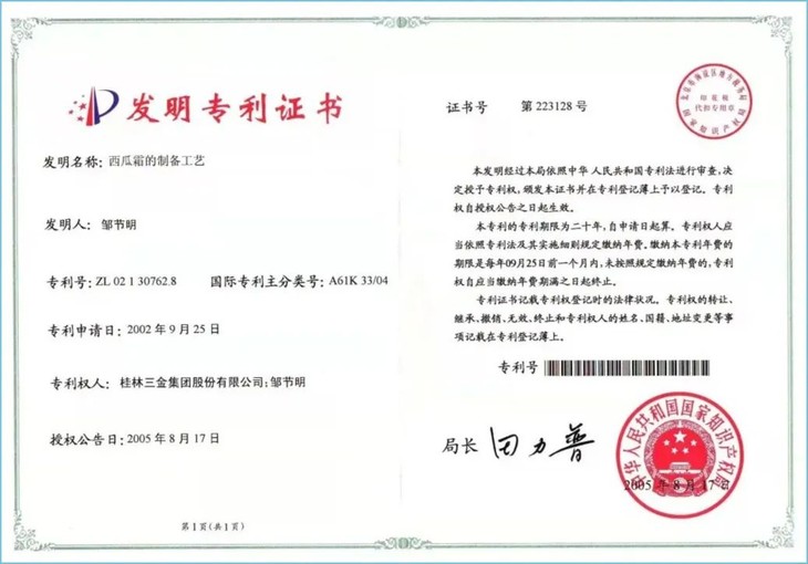 制作工艺也被列入了国家保密专li保护,也就是说目前只有三金日化拥有三金西瓜霜的制备技术。