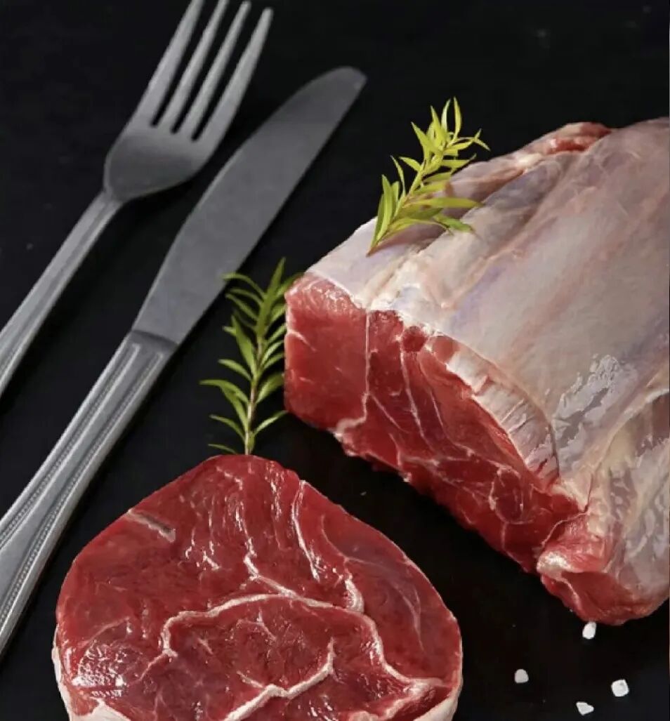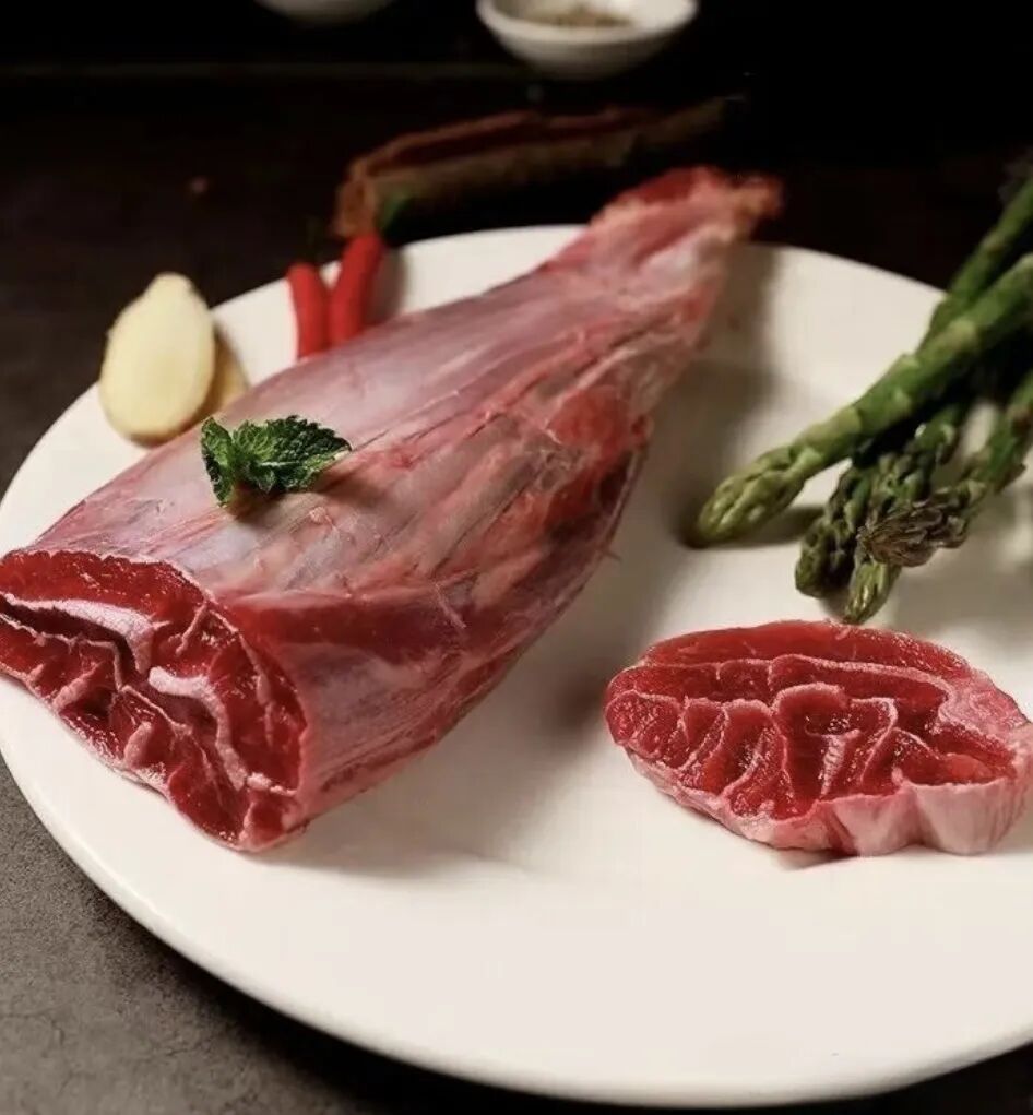 切面完整,带明显的肉筋,肌肉纤维明显,口感扎实。