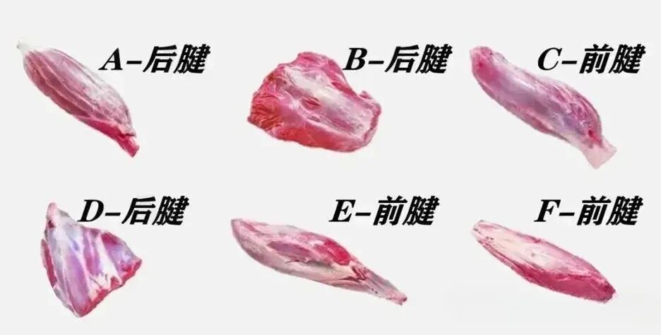 其中A腱、B腱、D腱为牛后腱,C腱、E腱、F腱为牛前腱。