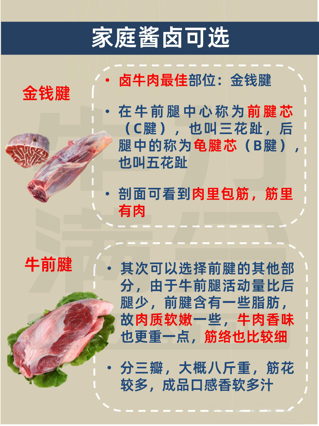 分为牛前腱和牛后腱