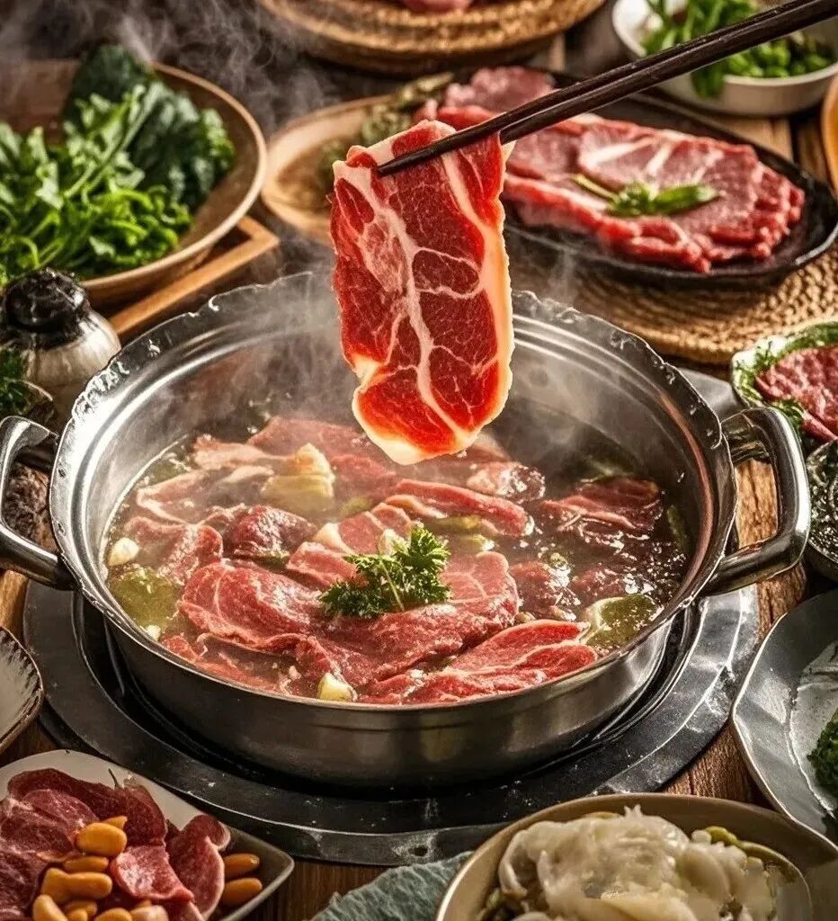 在潮山牛肉火锅中也能看到牛腱子的身影。脆弹有嚼劲的三花趾和五花趾,在热气腾腾的火锅中上下翻滚,几秒钟就能享受美味。