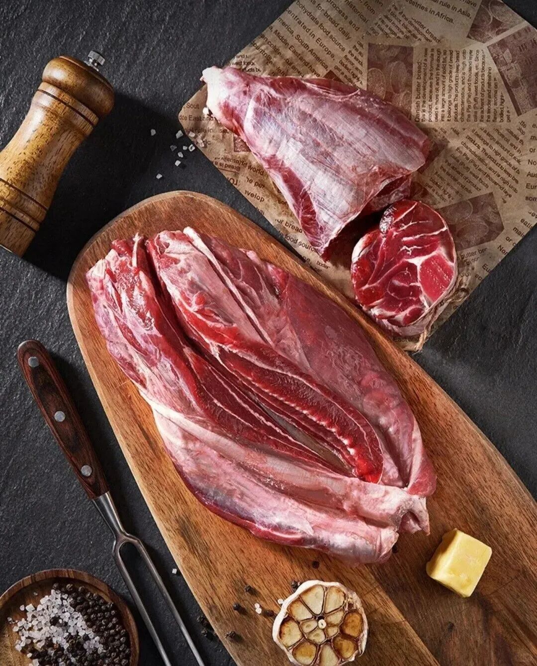 体积较大,筋肉走向不规则,但比例较好,多用作碎肉处理。