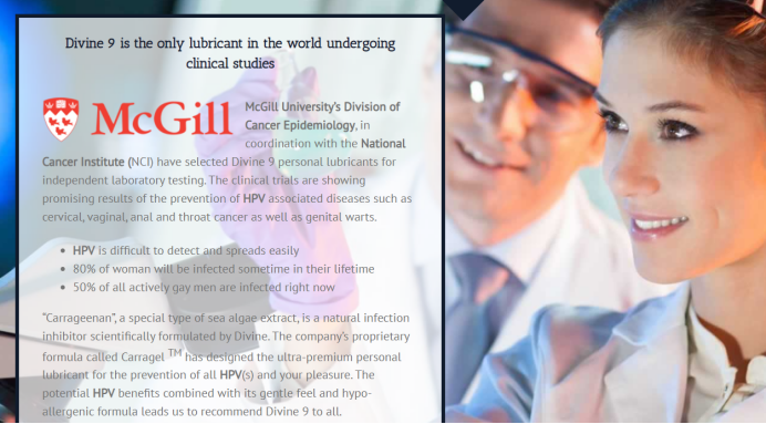 值得一提的是,2014年麦吉尔大学癌症流行病学部门与国家癌症研究所合作,选择了 Divine 9润滑油进行独立的实验室测试。临床试验显示了预防 HPV 相关疾病如宫颈癌、阴道癌、肛门癌和咽喉癌以及生殖器尖锐湿疣的良好结果。