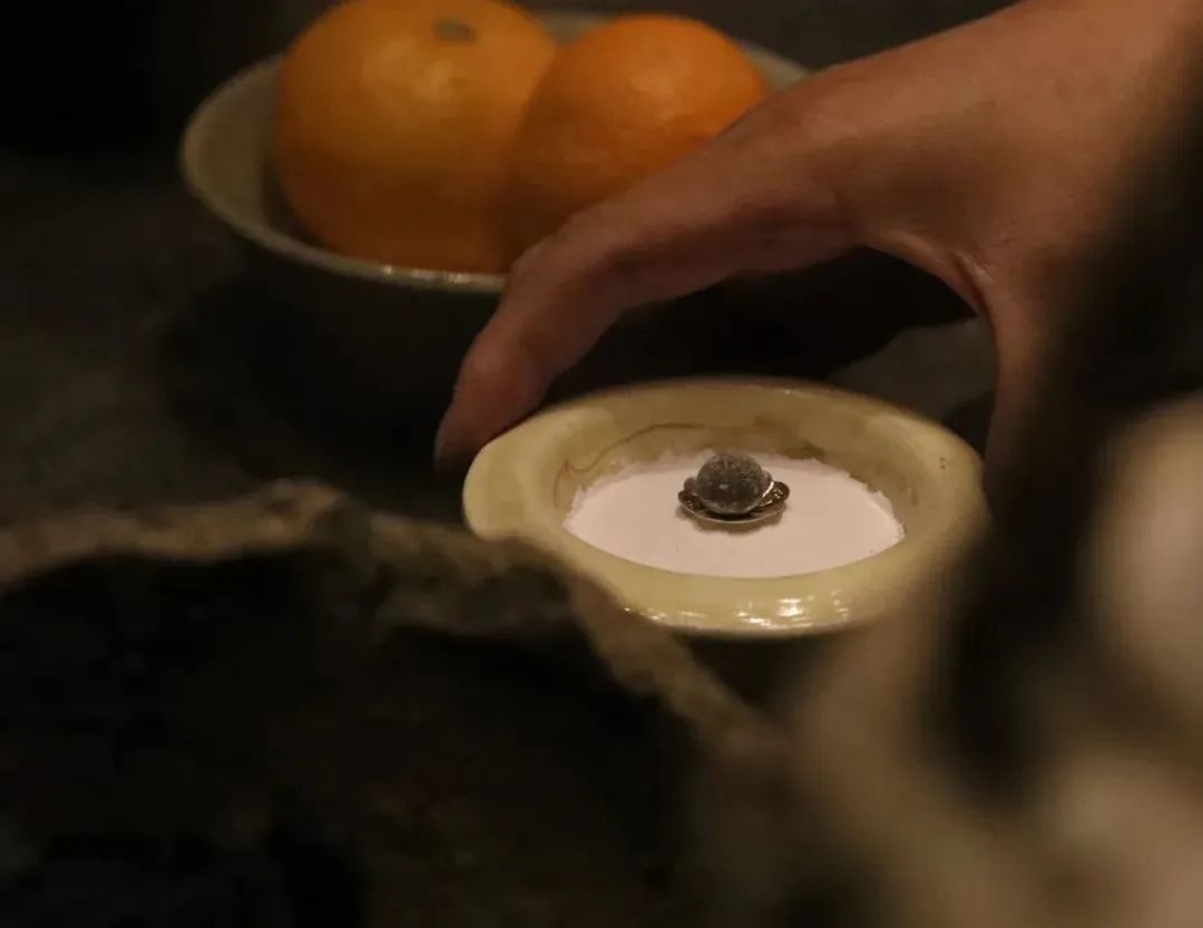 古法制作:将龙井粗研放入新采的莲花中,并用绳子裹住,静置两天,让清幽的莲花吸饱龙井的鲜爽气,而后浸泡在甜杏仁油中。