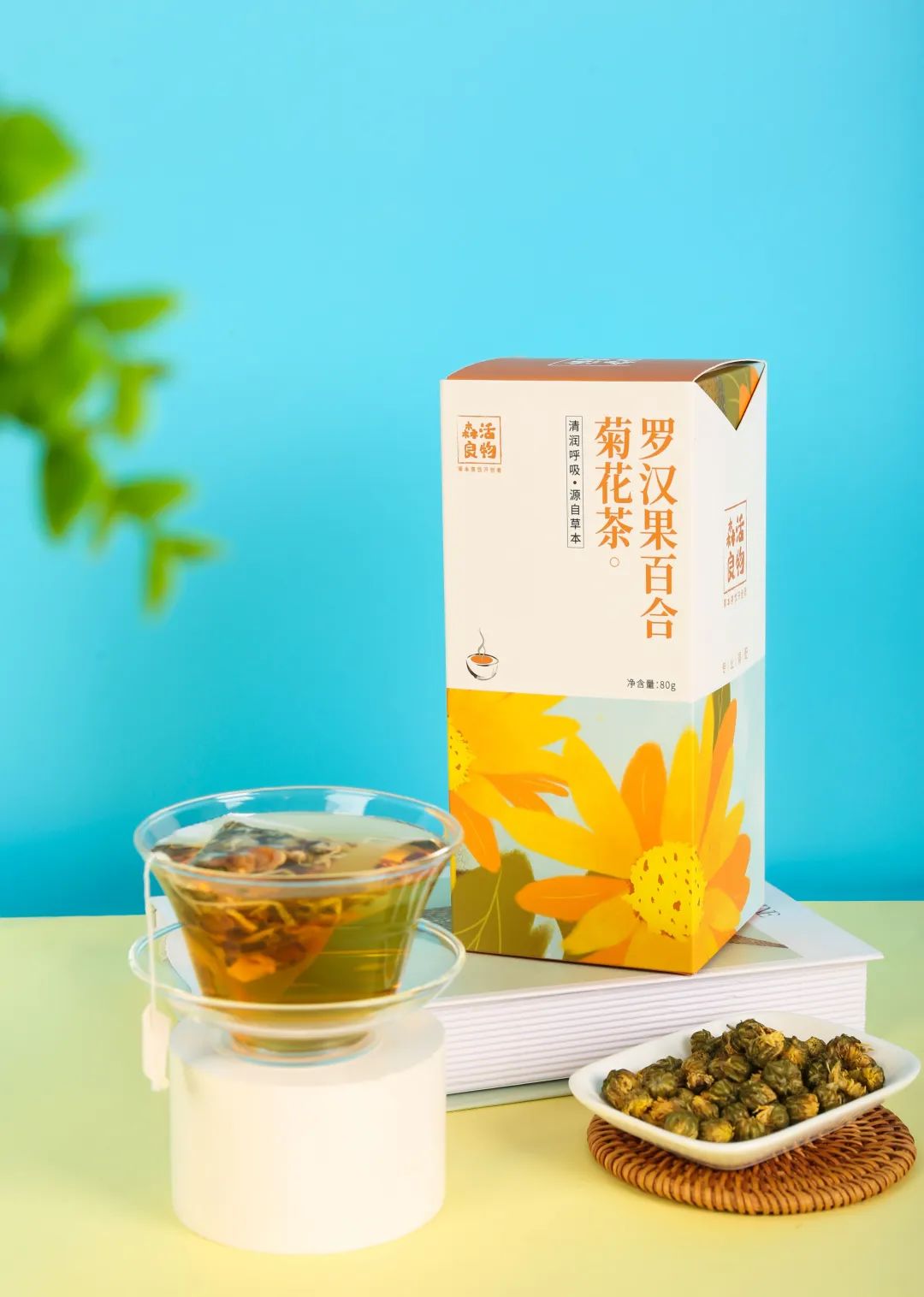 除了罗汉果和橘红,邀请的专业营养师根据产品的特性和人群,另外又加入了润肺清嗓的百合和散风清热的菊花。