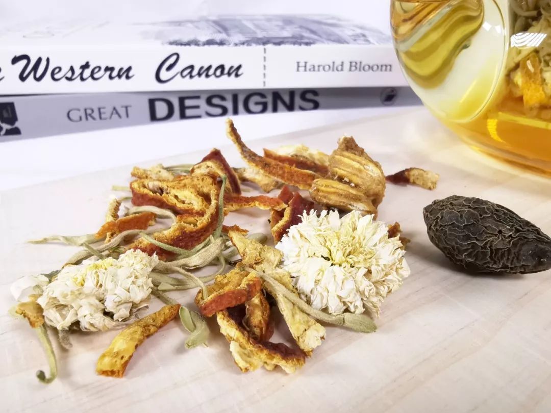 科学配比,制作完成了罗汉果百合菊花茶,大限度地发挥草本的清肺排毒效果。