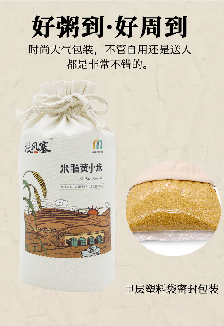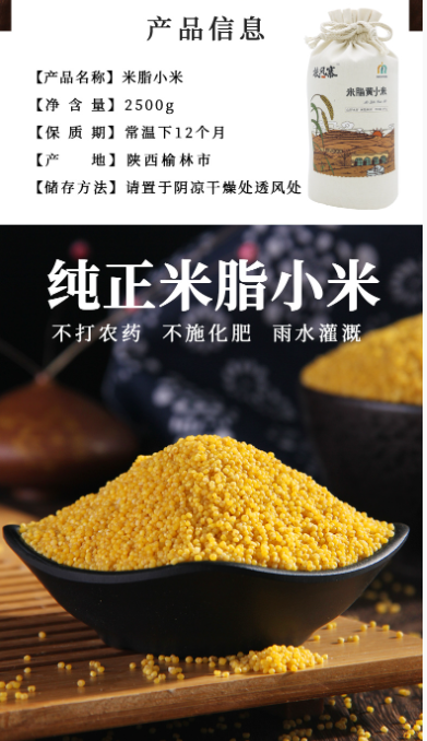 明清两代,米脂小米为上缴皇家之供品,被荣膺为中国“四大著名小米”。米脂县“以地有米脂水,沃壤宜粟,米汁淅之如脂”而得名,历来有“小米之乡”的美誉。根据米脂县志记载:“米脂城以地有米脂水,沃壤宜粟,米汁淅之如脂,故以名城”。 其独特的自然环境堪称一绝,深厚疏松且肥沃的黄土层,富含多种矿物质,为小米生长筑牢根基;黄河支流无定河提供充沛水源,助力根系发达、植株茁壮;年均 2800 小时的日照,让小米在阳光中积累丰富营养与独特风味。