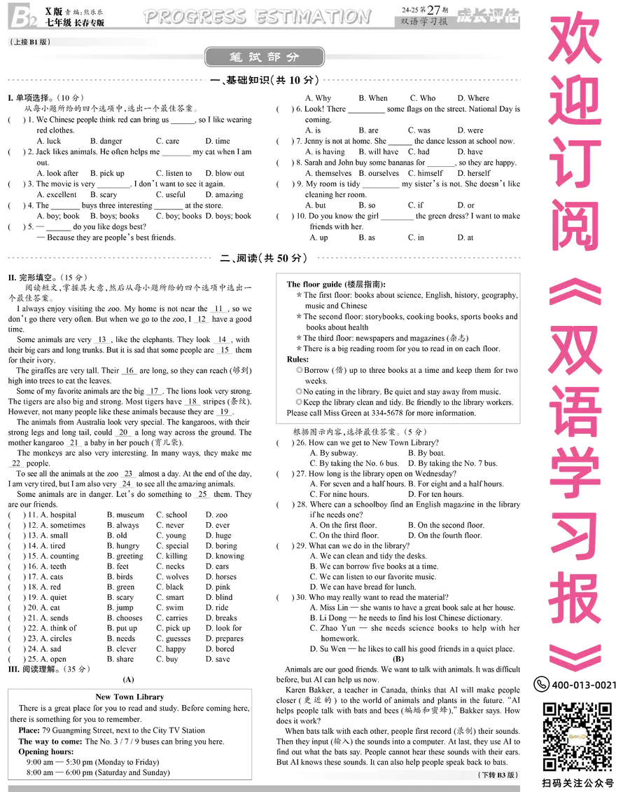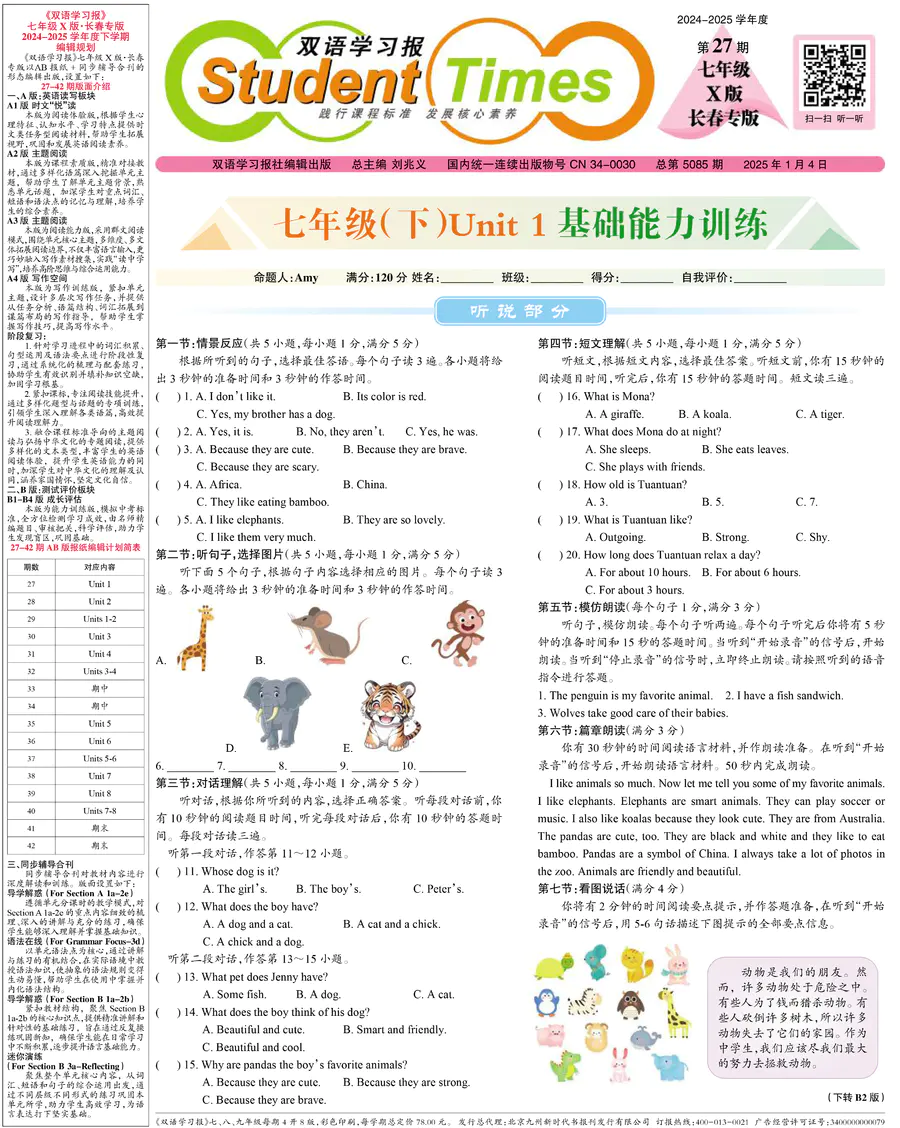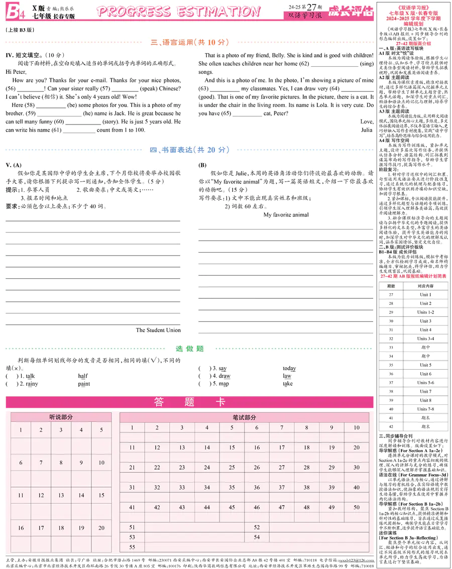 《双语学习报》七年级 X版长春专版 第27期