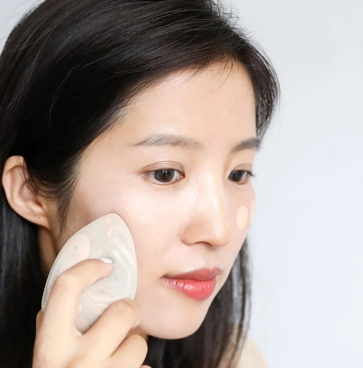 上完粉底液之后,拿一个干净的美妆蛋轻轻按压全脸,这一步的目的是去除粉痕,让底妆更加服帖。