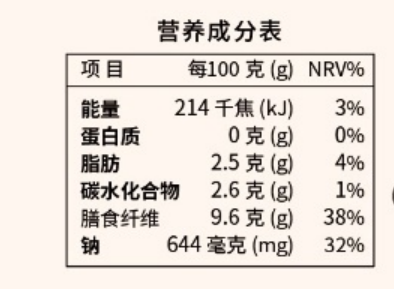 可以看到,每100g素毛肚当中,热量才214kJ,比苹果还低;