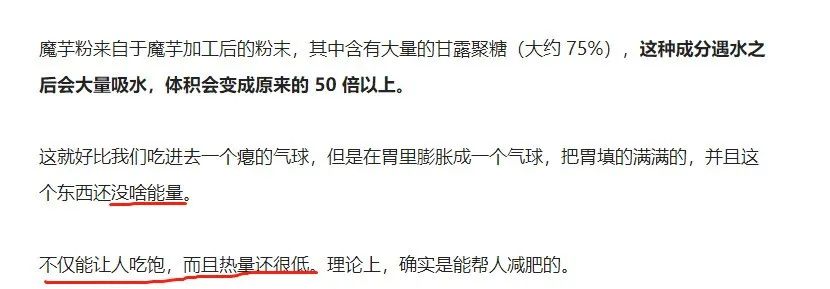 按照权威大号丁香医生的说法,魔芋粉不仅能让人吃饱,而且能帮人减肥。