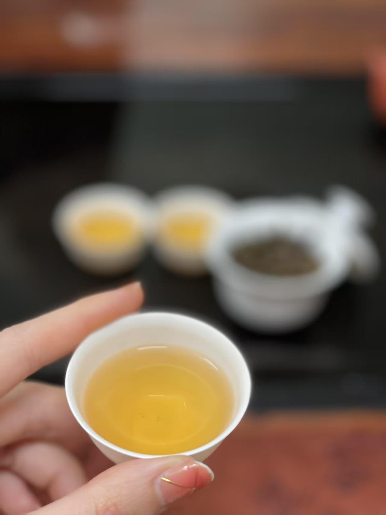 第1泡:茶汤浅金透亮,入口清冽如山泉,舌面泛起冰糖凉意