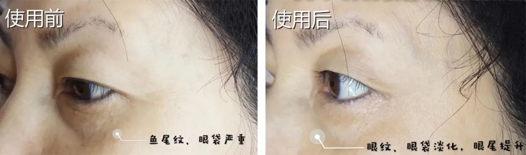 长期熬夜留下的大眼袋、眼部干纹,肉眼可见的淡化了,超开心。