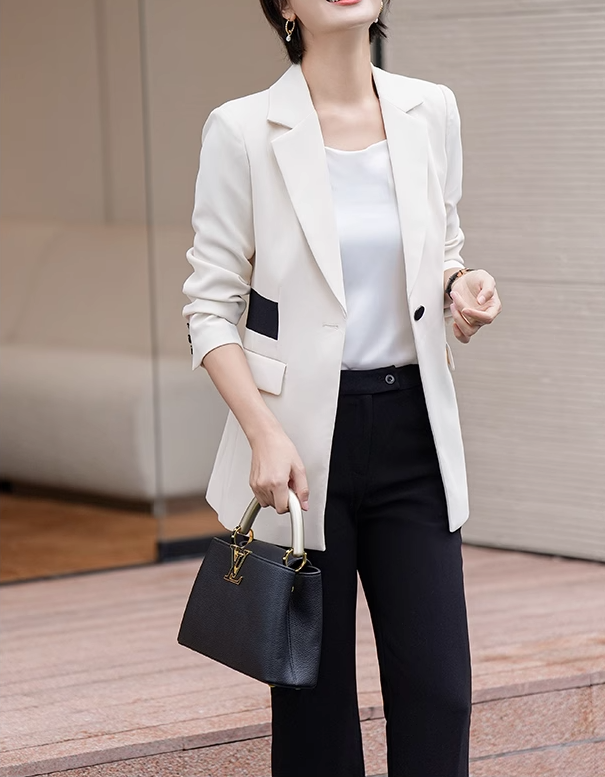 大面积白色结合黑色的撞色和挺阔利落的版型,整体质感更显高级