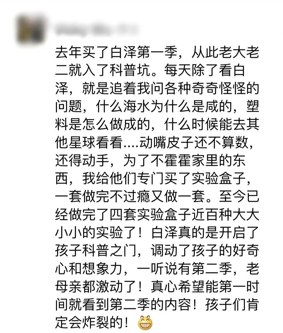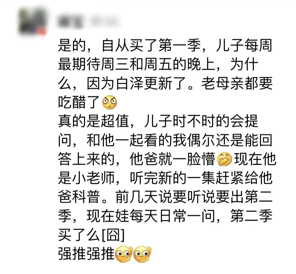 我其实经常会在鸡娃群里,看到大家发的各种拼团、拼课。与其东拼一榔头、西拼一棒子,浪费很多时间,不如珍惜眼前,把白泽科普这套视频用好。