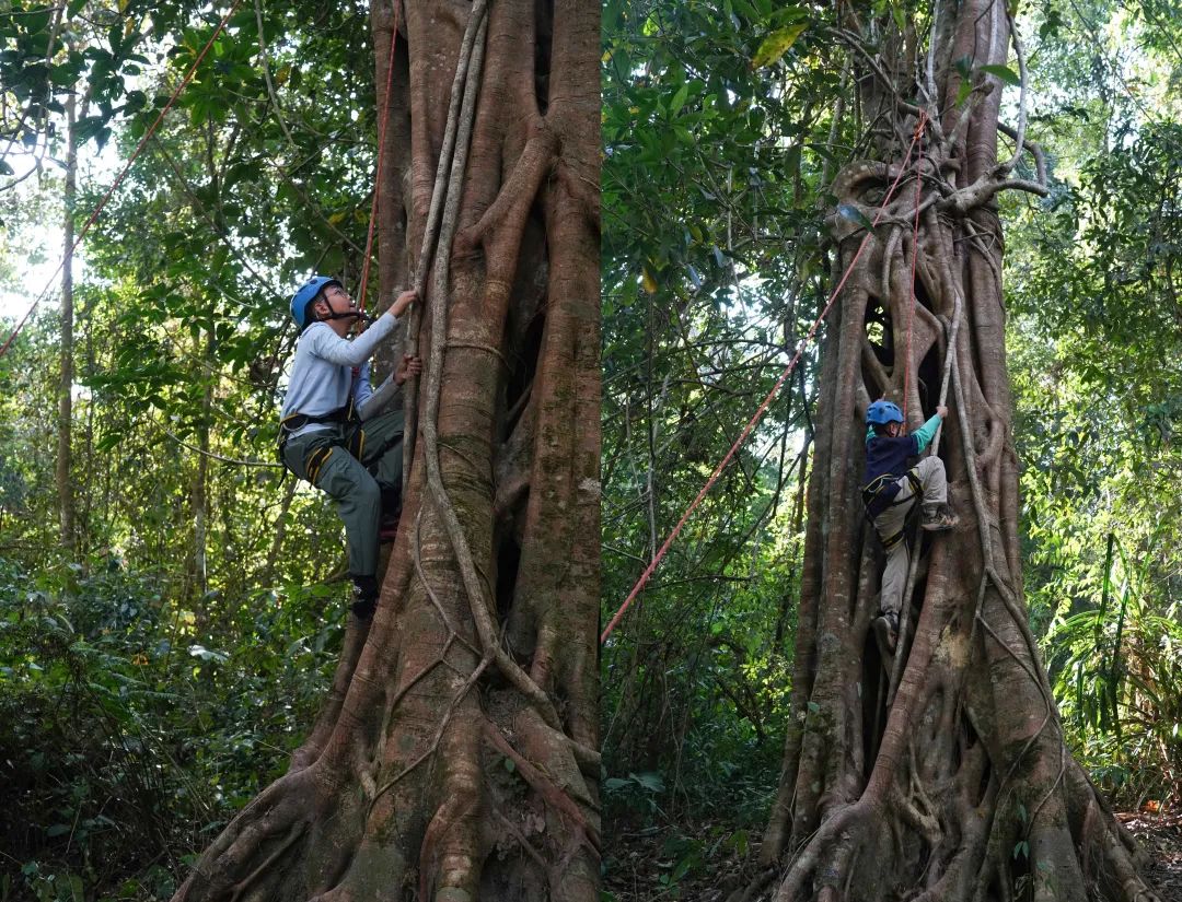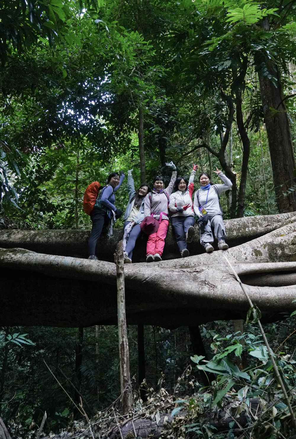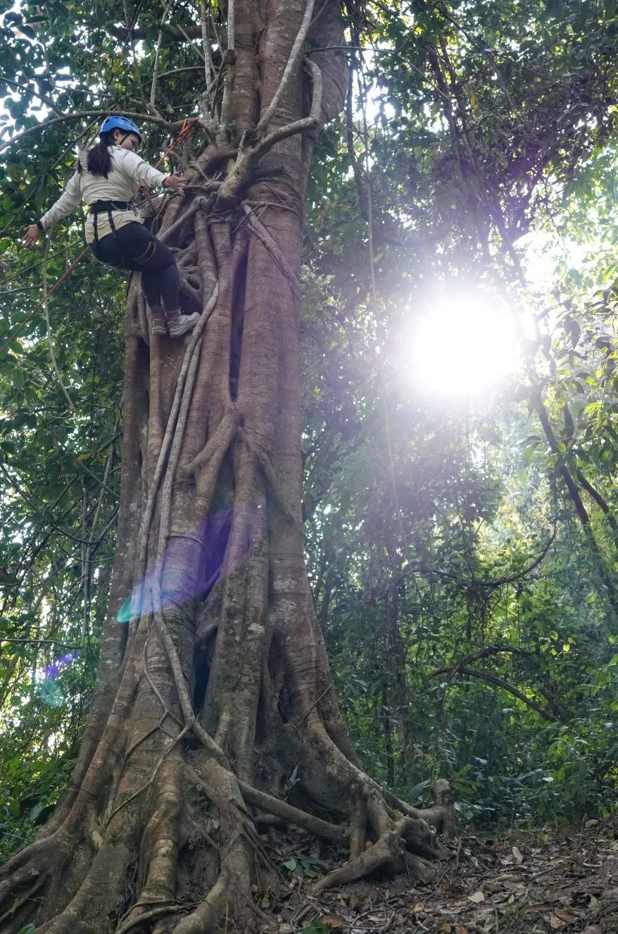 @露月在看大家攀树的时候,我发现一个很有趣的现象。大人攀树的时候常常会更在意自己的落脚点,生怕一个没踩稳掉下来;而队伍里的几个小朋友几乎没有低过头,一股脑只是往上冲,这或许就是人类最纯净有力的向上吧。不论是在植物园,还是在普洱之乡—易武,又或是到了真正的雨林,我都不得不承认,热带雨林的生命力简直就是奇迹。这里的榕树就跟打了激素一样,生长之快速、树干之高大、枝叶之繁茂。团内的小伙伴们看到大榕树时都在猜测其年龄,看起来拥有千年高龄的它们许多其实只有 100 多岁。