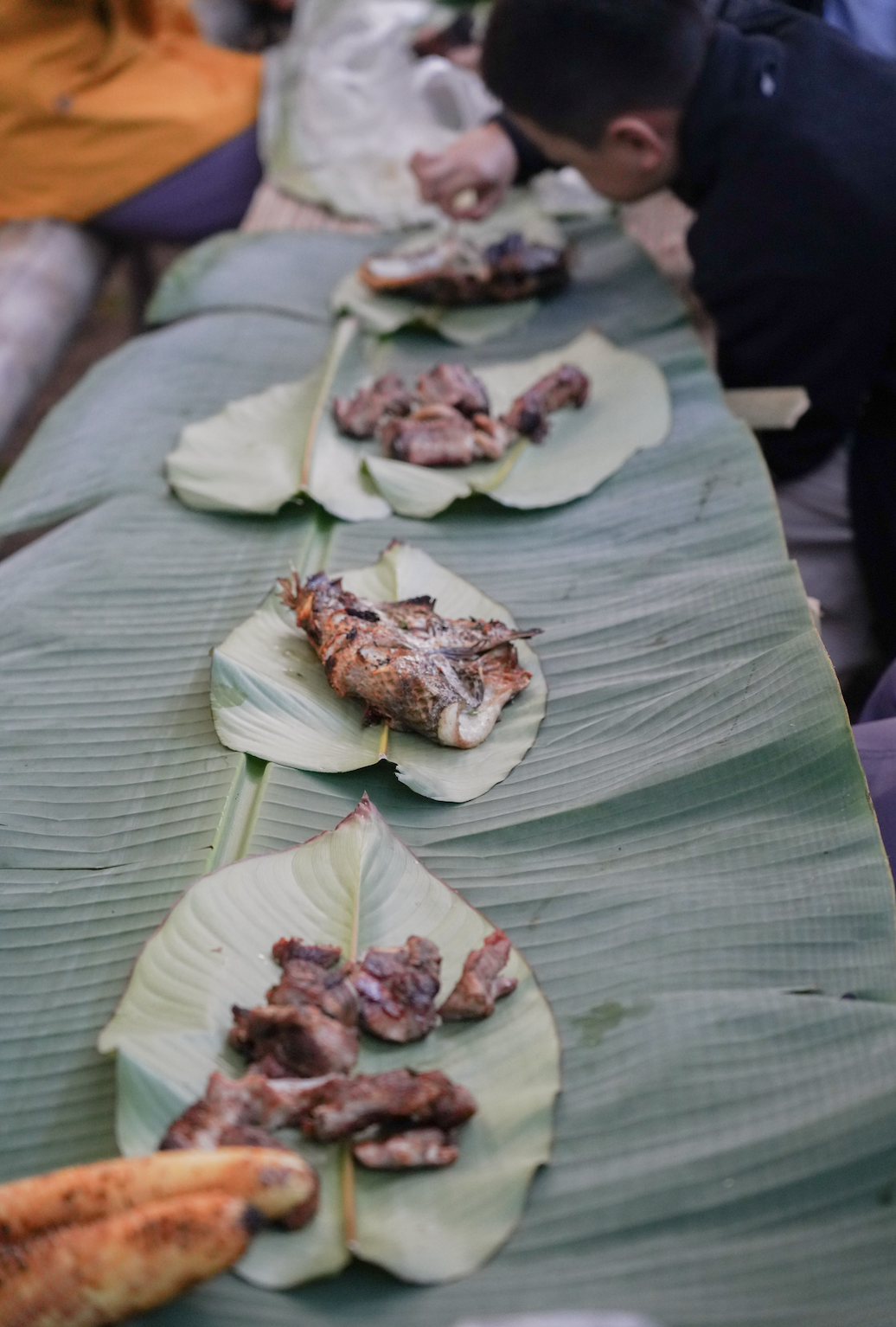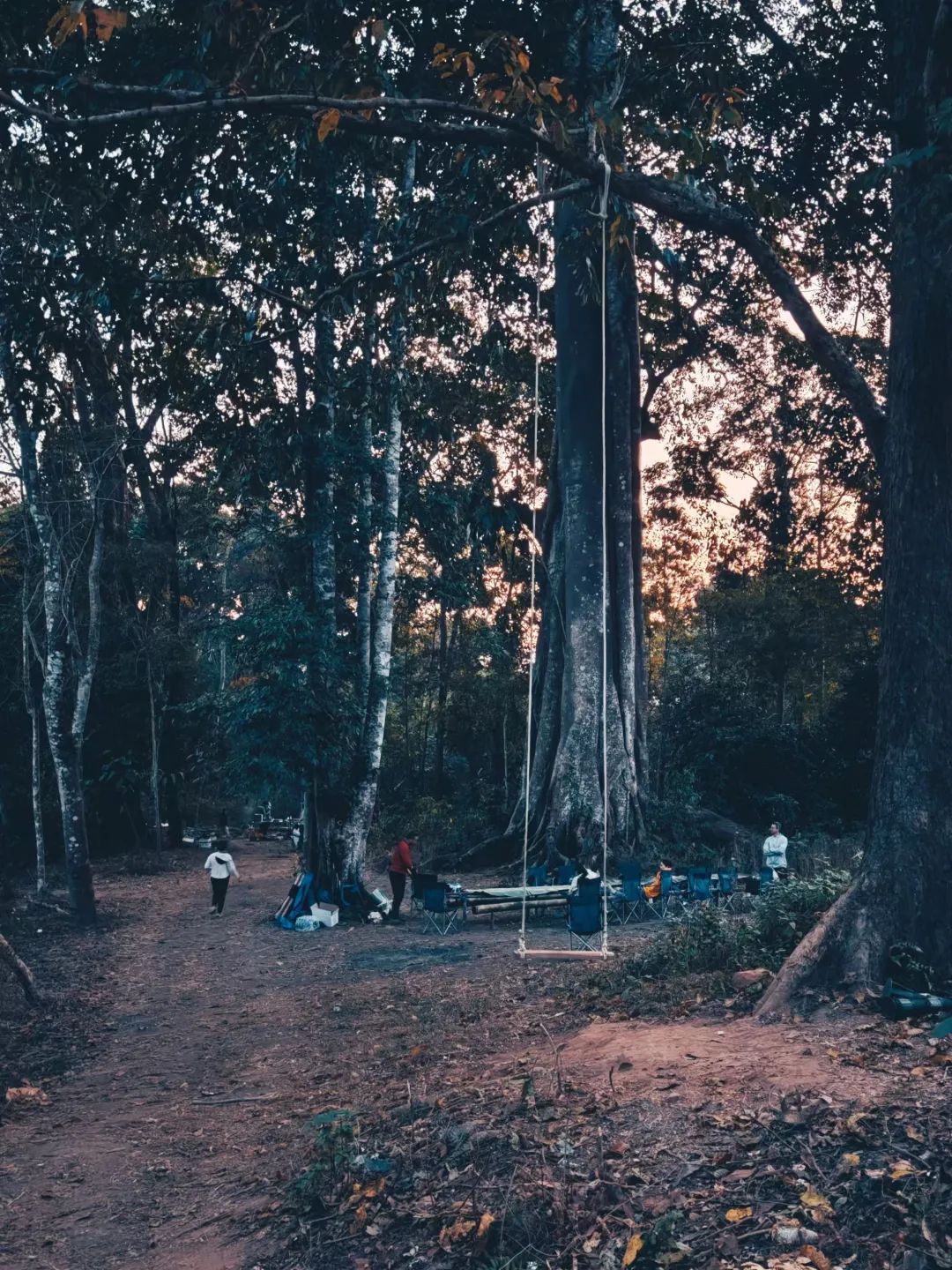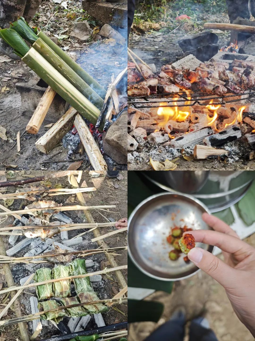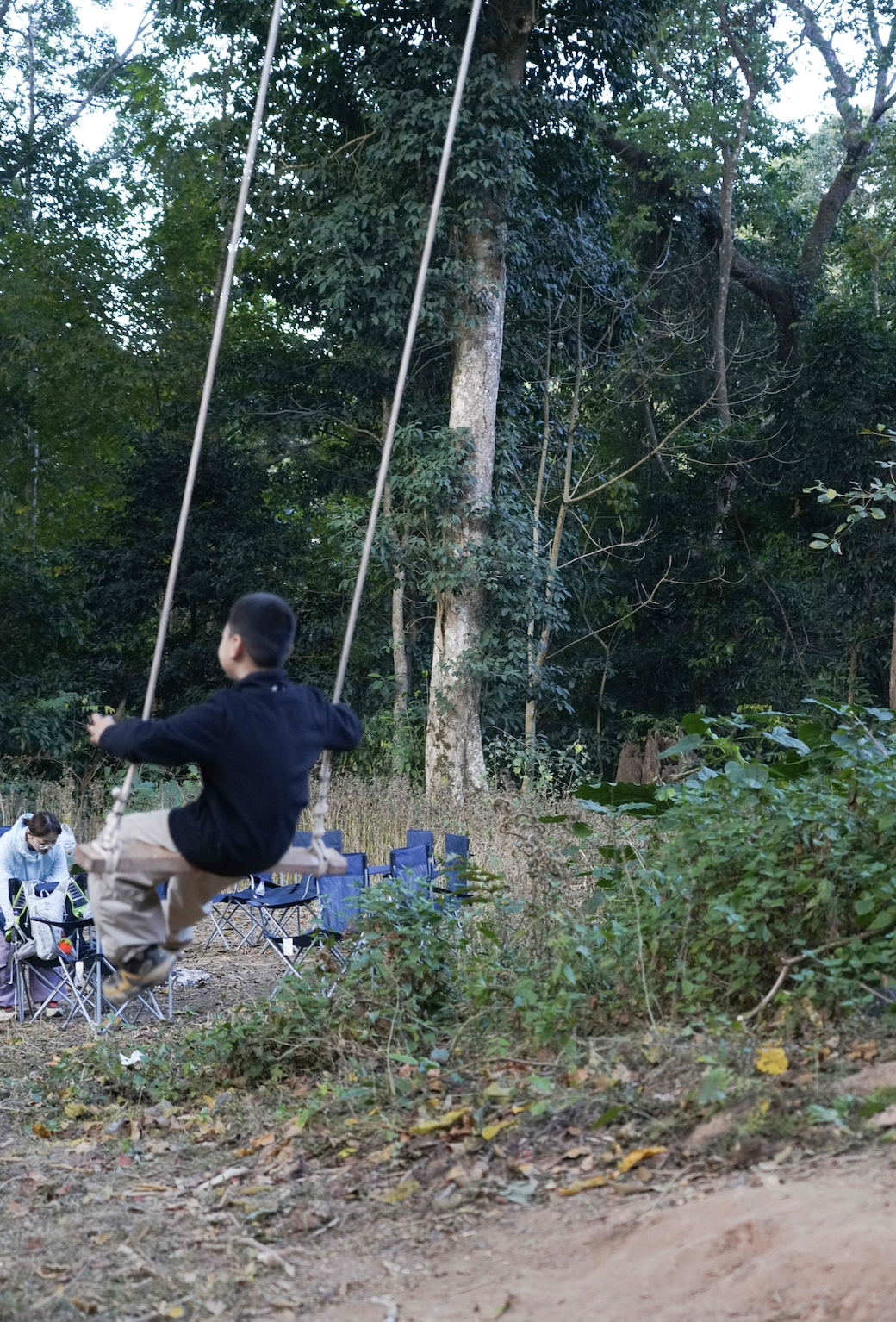 雨林厨房不仅让我们大饱口福,我甚至在这里找到了一种 “家” 的感觉。爱做饭的小伙伴在露天厨房忙来忙去;小朋友兴致勃勃地帮大人捡柴火;爱拍照的女生们轮番着荡秋千;操心的奶奶时不时叫着跑来跑去的孙子……等到烧烤快熟时,队伍里几个 10 岁左右的小男孩被香味吸引过去,一边扮演着烧烤摊主的角色,一边等待着排骨熟时好第一时间品尝。