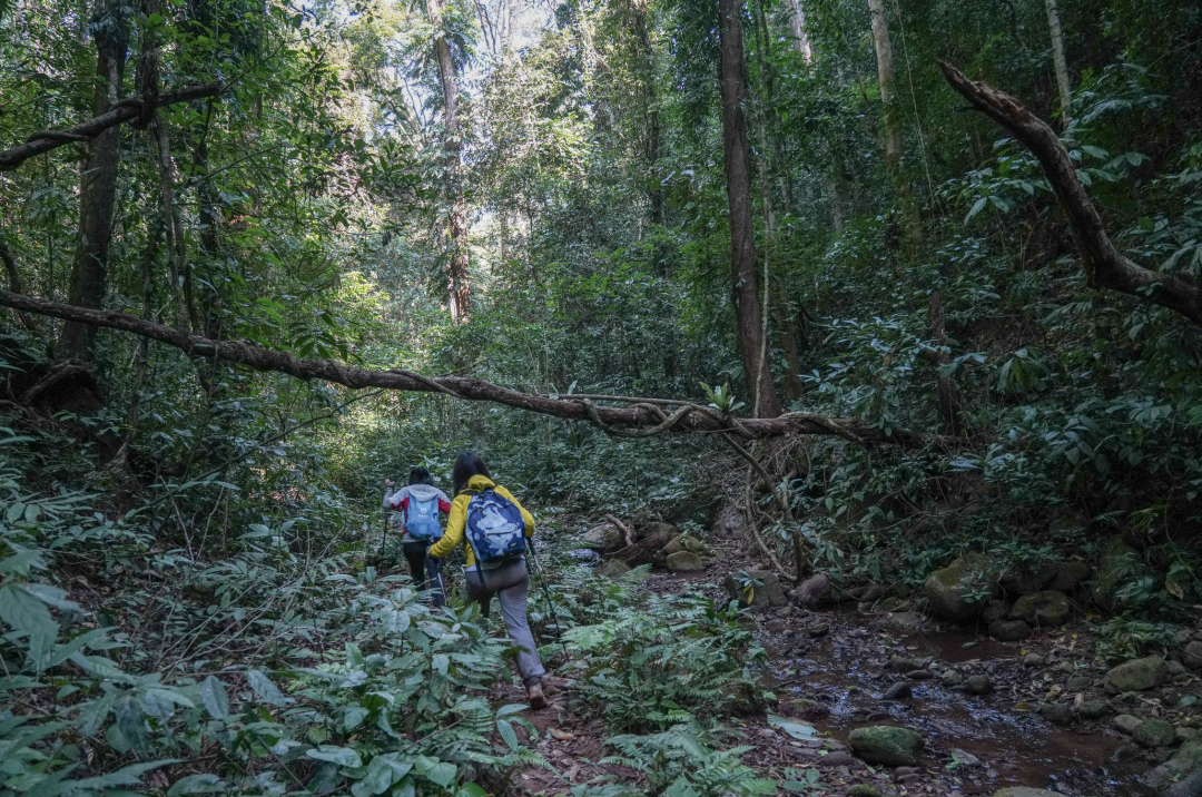雨林里常见的障碍、陡坡@露月短短单日不到 10 公里的路,穿森林、过小溪、翻垭口、不注意还可能往下滑,谁还能说,这条线路不够户外?如果觉得还不够,到了营地,立马就能去爬树。算好时间,可能在爬树的过程中与落日同框哦。