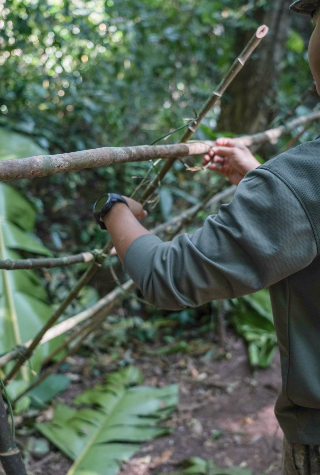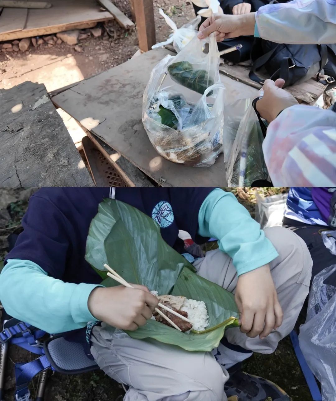 本以为这次的行程会以 “低分” 结束,还好勐腊的热带雨林扳回了一局。从大家领到糯米饭的那一刻,我悬着的心终于放下了,真正的行程终于算是开始了。我们会在雨林里待上 2 天 1 夜,共徒步 15 公里,露营一晚,涉及攀树、植物取水、雨林厨房、搭建庇护所等在地活动。