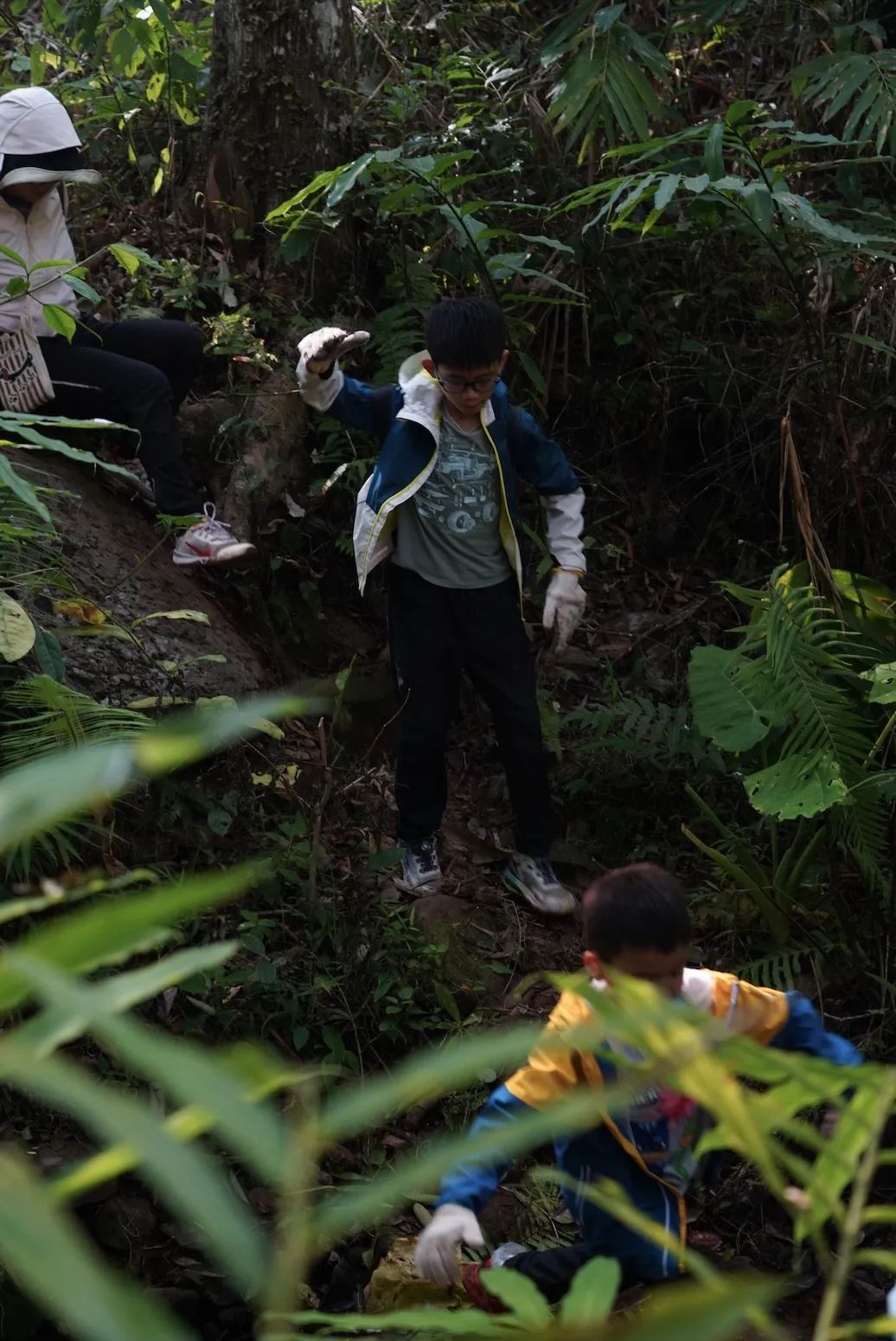 在雨林生长了许多 “神奇生物”,芭蕉树便是其中之一,也是我们学习植物取水的重要一环。我们在雨林一边徒步,一边学习必要的雨林生存技能,在愉快玩耍的同时,也潜移默化地接收了不少了知识。