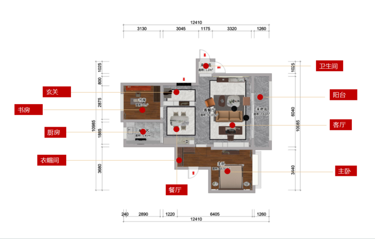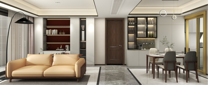 1.客餐厅一体设计使整体空间更显通透,合理动线布局提高生活居住效率;