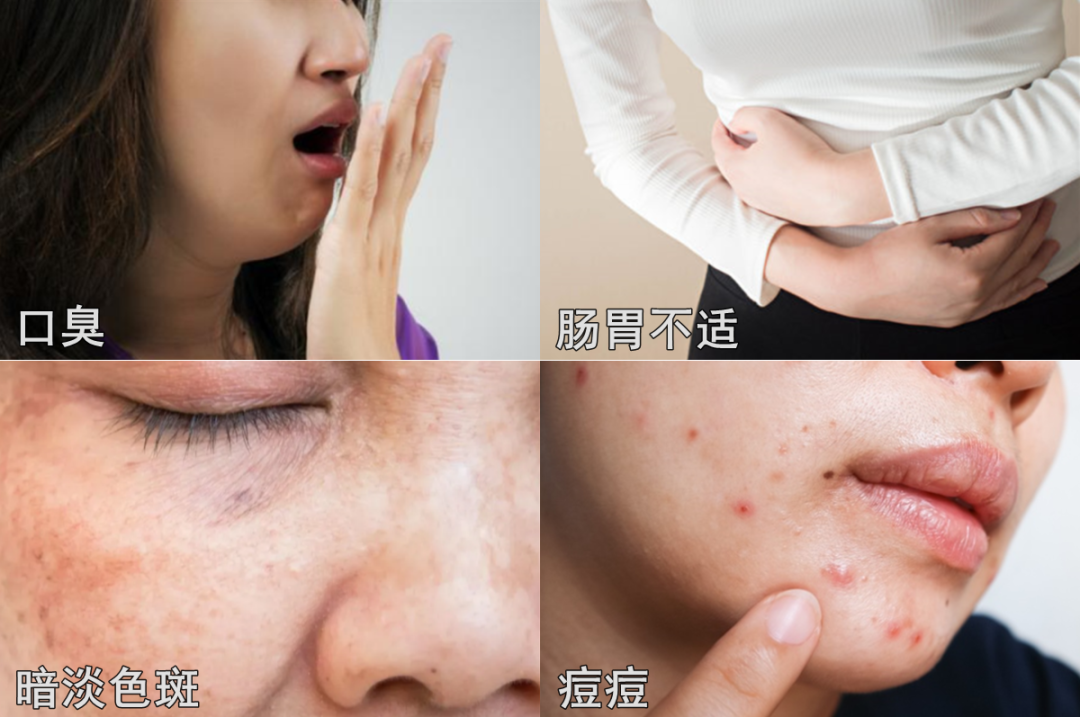 脸上长斑、冒油、有口臭、便秘,