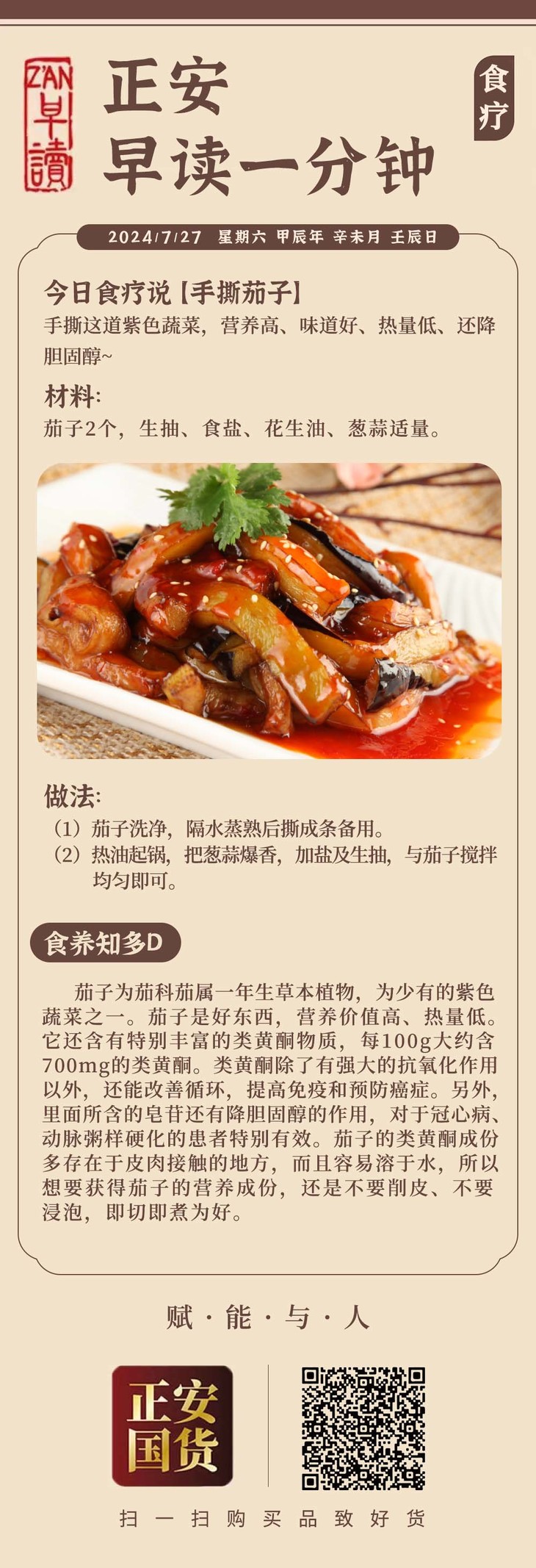7月27日 应季食方【手撕茄子】降低胆固醇