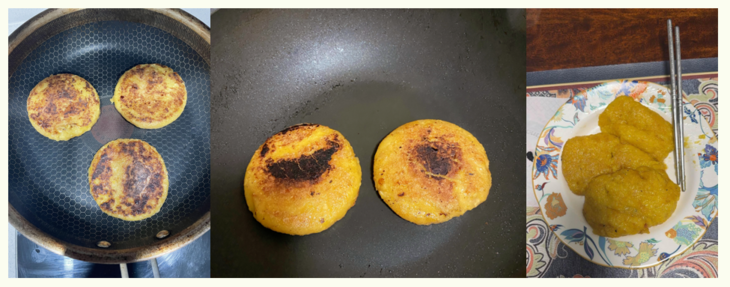 早餐来不及做熬粥,开袋玉米浆包煎着吃;