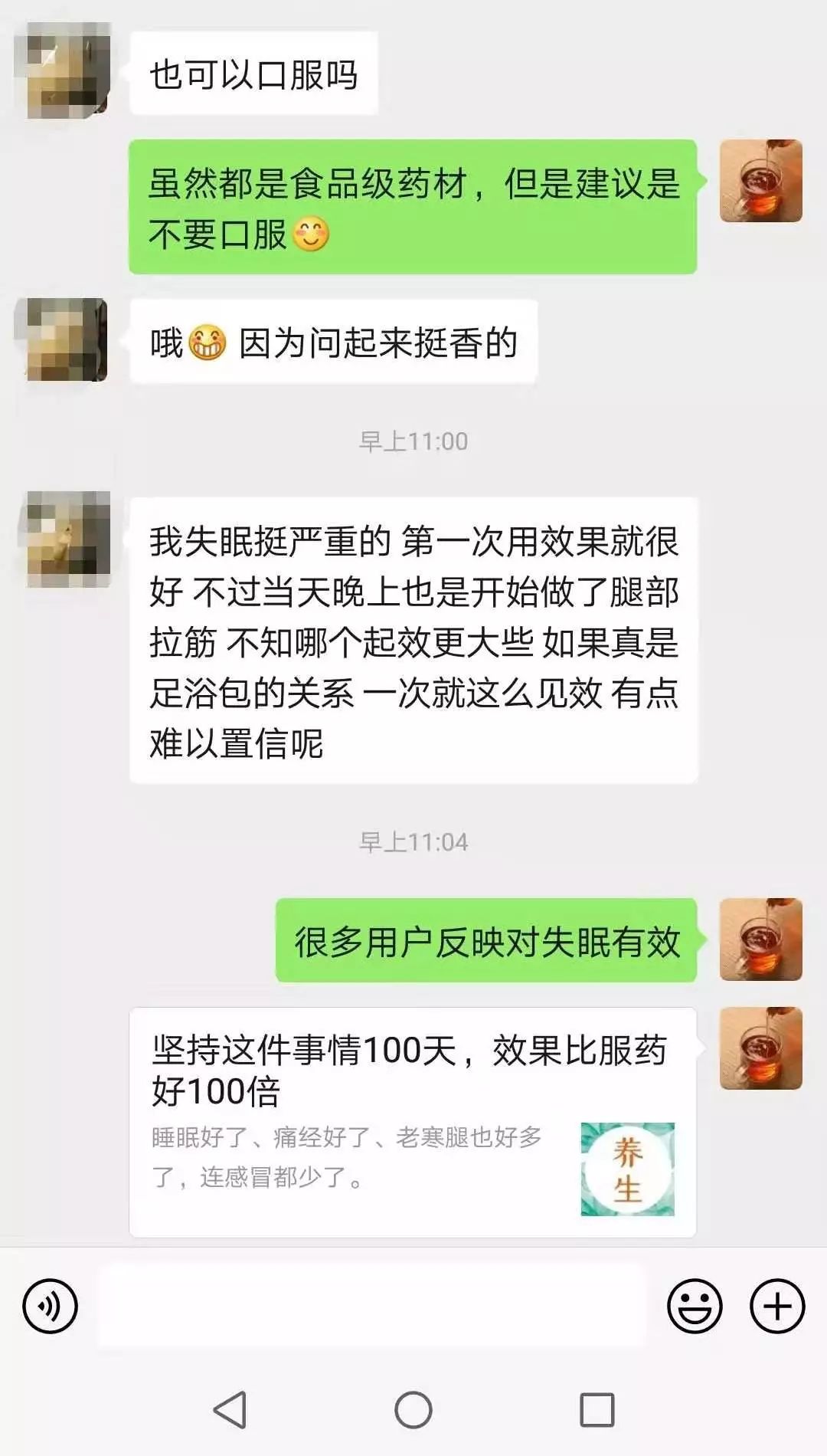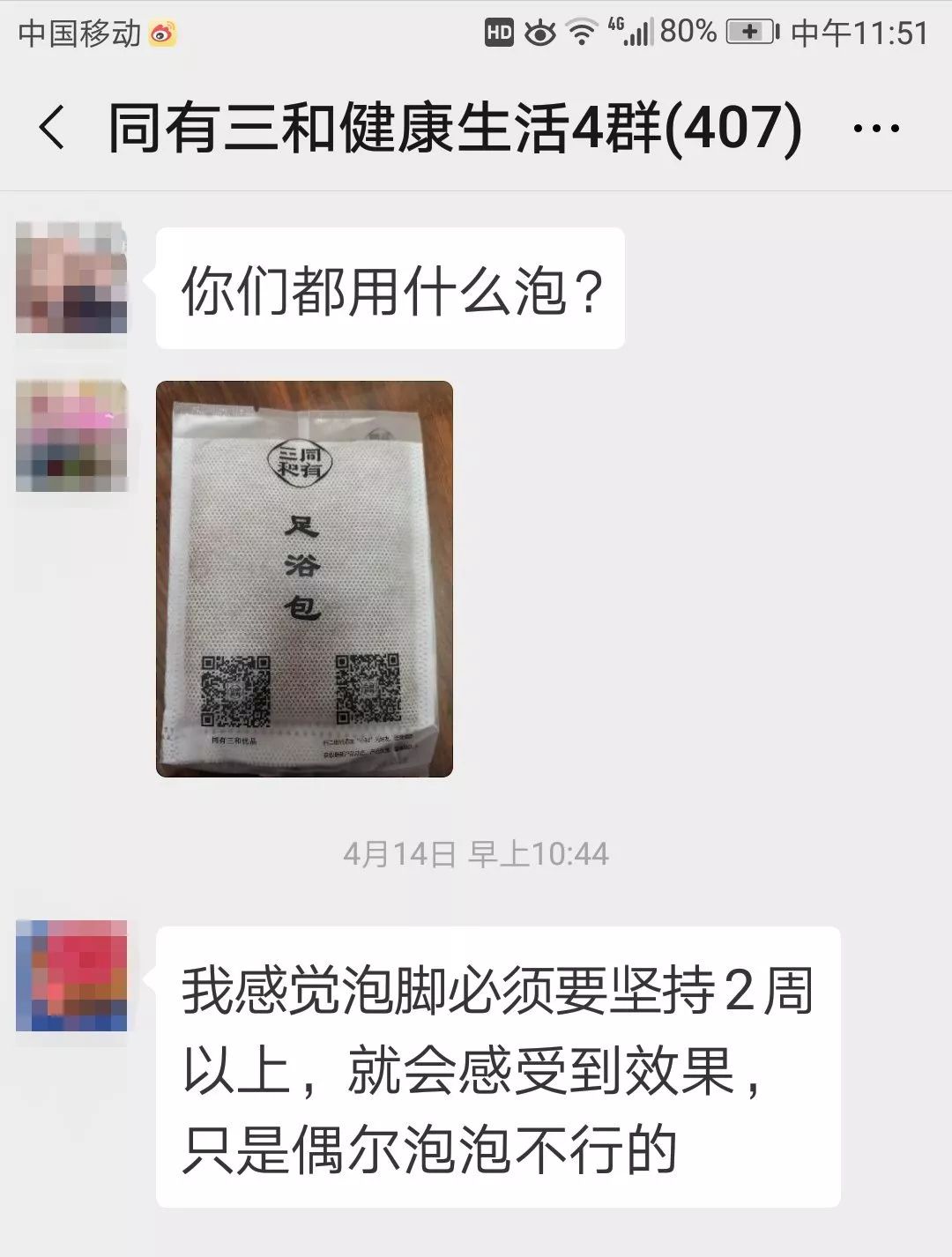 通过对老妈连续3天的测试,对三和温通足浴包效果比较有信心了,把一些使用心得也和同有三和工作的朋友进行了交流。