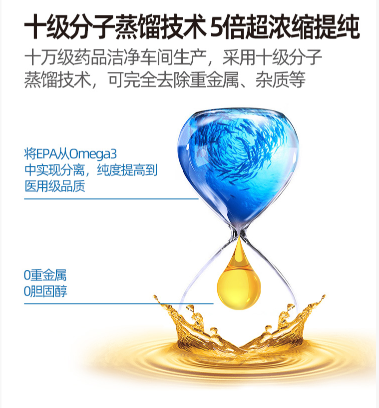 纯净是鱼油安全的生命线!金钥匙采用国际领先的十级分子蒸馏技术,在高度真空和精密控温环境下进行反复提纯。