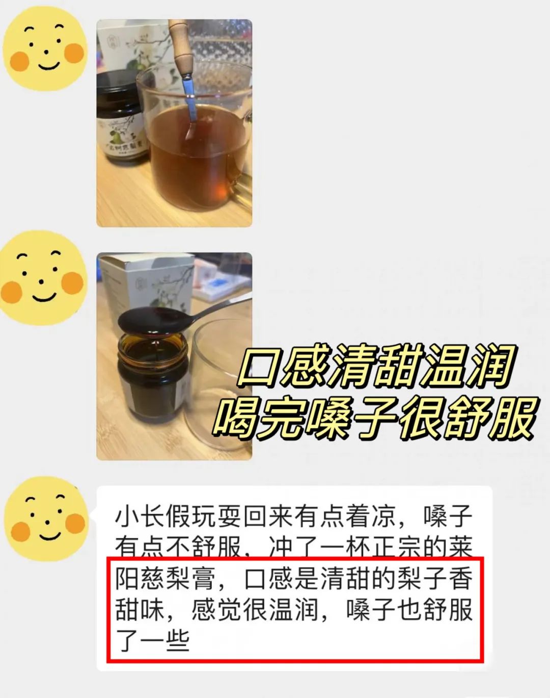 口味上甜而不腻,只有纯正的莱阳梨自有的酸甜,每次不舒服的时候喝一两口,有很好的缓缓作用