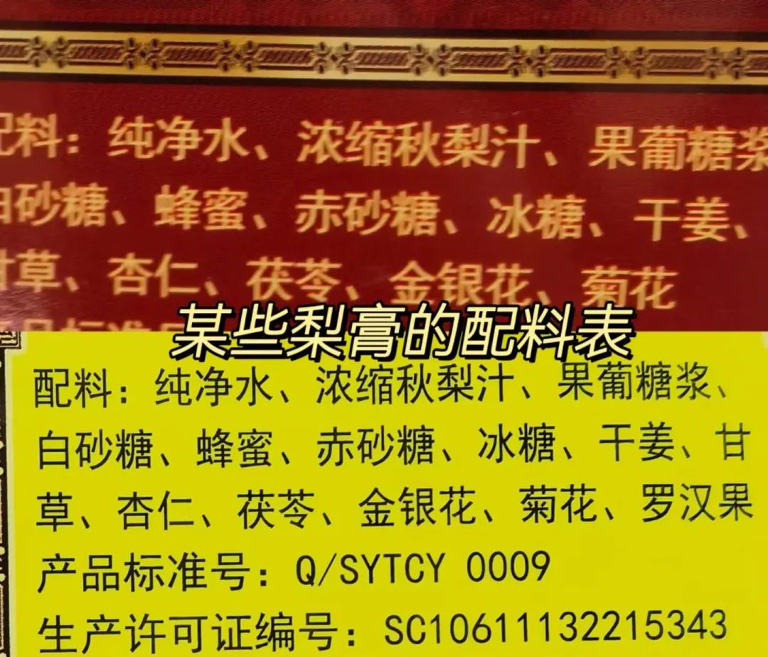 市面上的梨膏品质良莠不齐,大多都是参杂了糖、水、增稠剂等,梨的用量就更不知道只有多少了