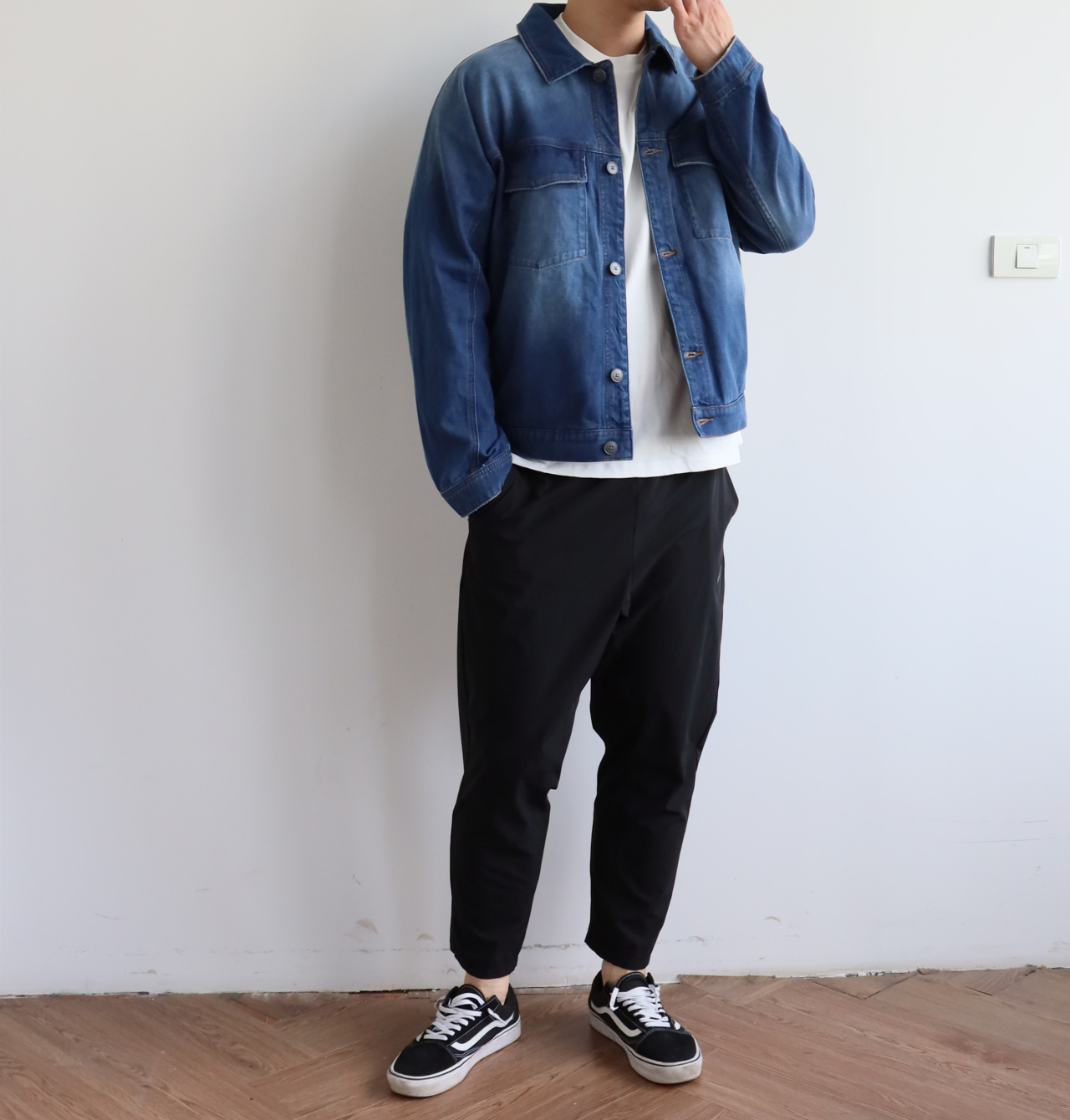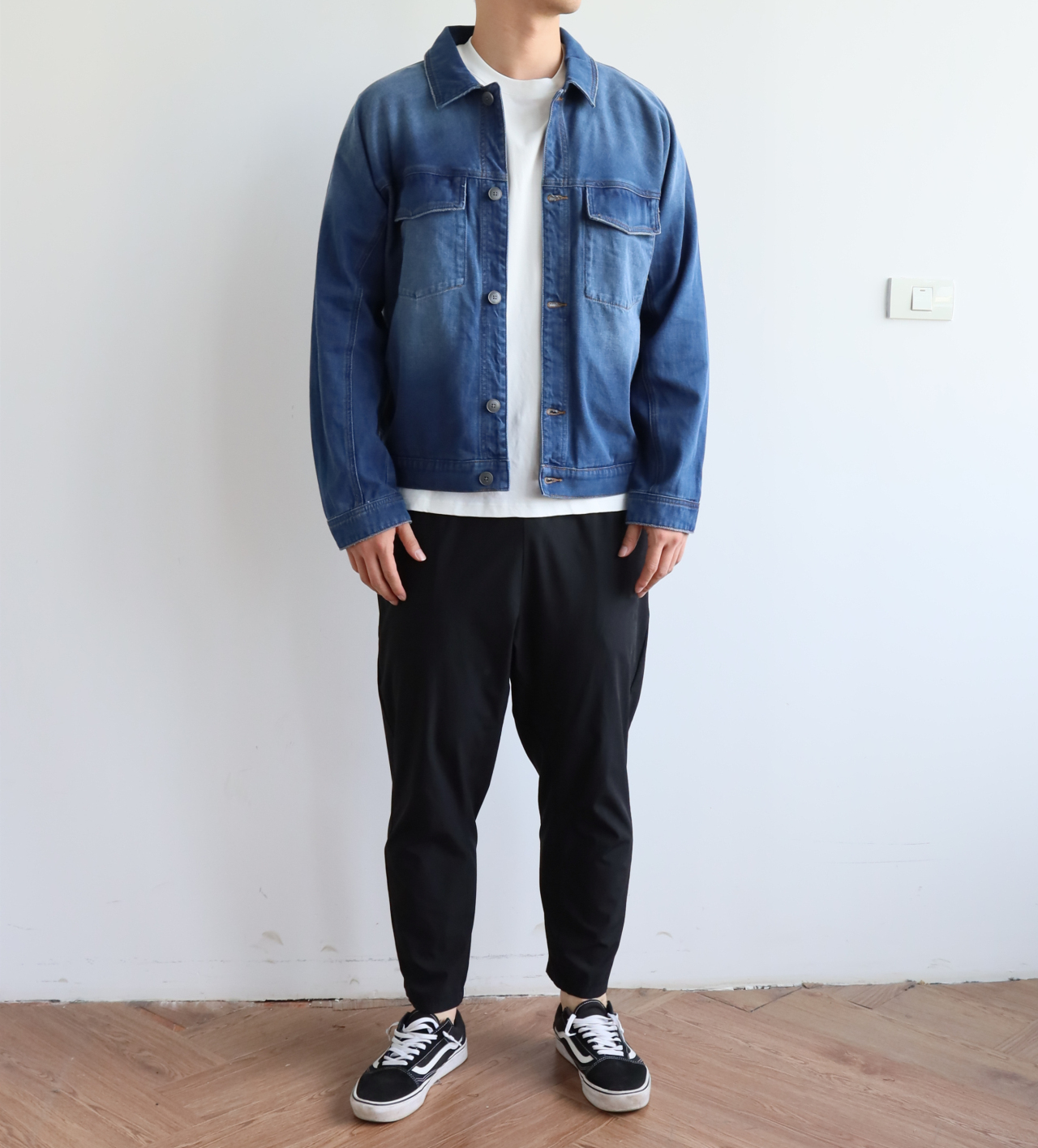 E.Z 倒插肩 宽松 水洗口袋牛仔夹克外套